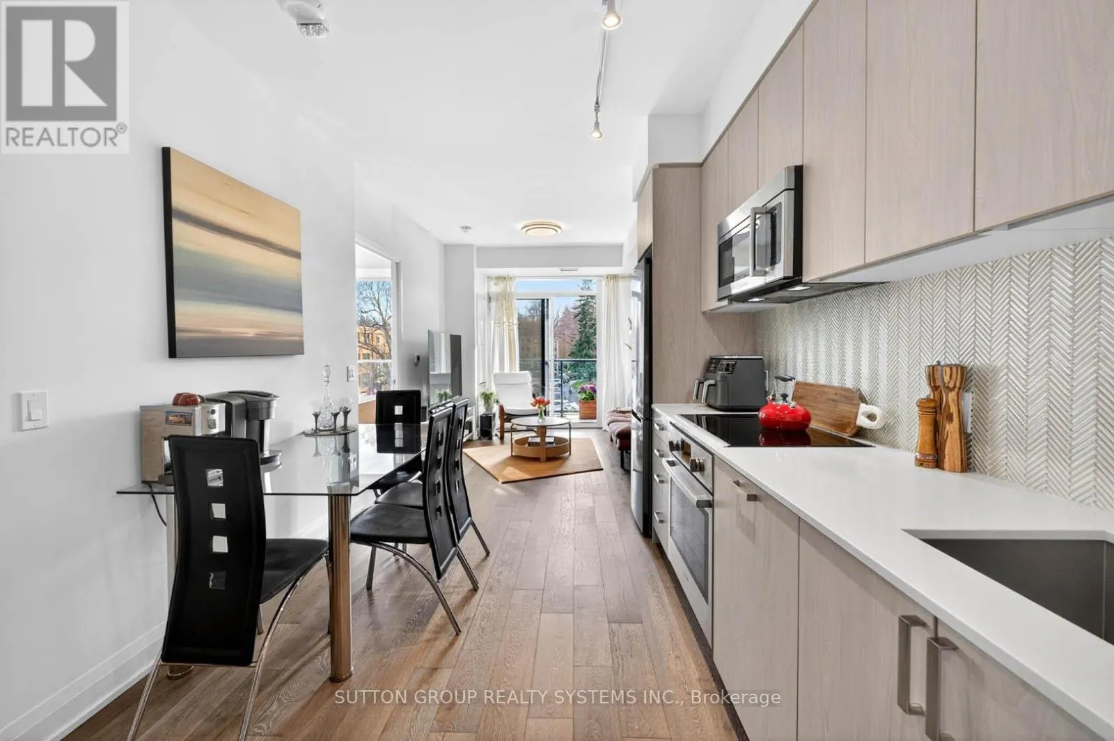 The Kingsway & Ashley Road 293 The Kingsway is accented with lush landscaping, mature trees, courtyards, and walkways, giving it the exclusivity and privacy of a great community. Save, tranquil, modern - an address of destination! Welcome to a light-filled one-bedroom + Den suite offering bright, spacious, airy open-concept interior flow seamlessly from living to dining to kitchen. Large windows and a balcony offer a clear view of the surrounding space, in-suite full-size laundry.