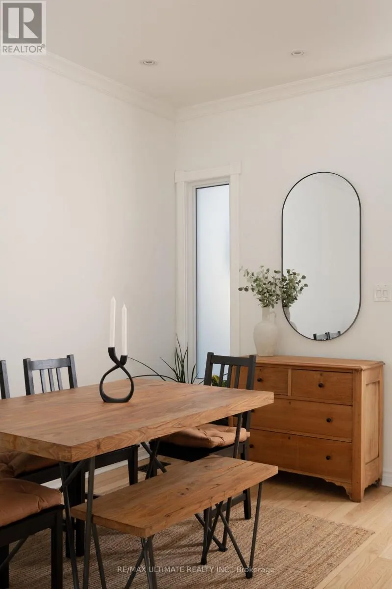 At the rear, the kitchen transitions into a sun filled breakfast area, grounded by warm cork flooring, where glass doors open to a private backyard patio, creating a seamless connection to the outdoor space. The second floor offers two bedrooms, including a spacious primary with double door entry and walk in closet, along with a well appointed bath with a deep soaking tub. The third floor is a standout retreat of its own, complete with skylights, gas fireplace and rooftop deck, equally compelling as a primary suite, inspiring home office or quiet lounge. The finished lower level offers a comfortable in law suite with a separate front entrance, full kitchen, living area, bedroom and bath, adding flexibility for guests, extended family or income potential. Meticulously cared for and truly move in ready, this home reflects pride of ownership throughout, blending character with everyday function in one of Toronto's most loved west end neighbourhoods, steps to Dufferin Grove Park, local schools, transit, and the shops, cafés and restaurants of Ossington and College Street. Quiet street. Street parking. Great neighbours. The kind of block people stay on. (id:27476)