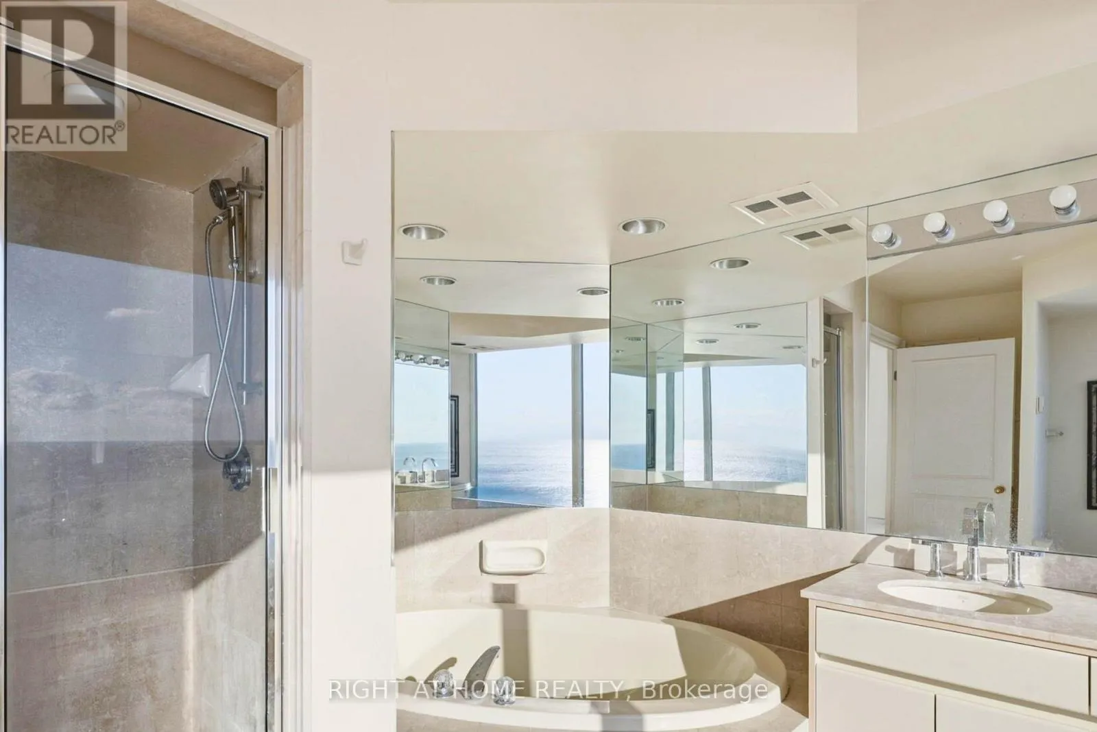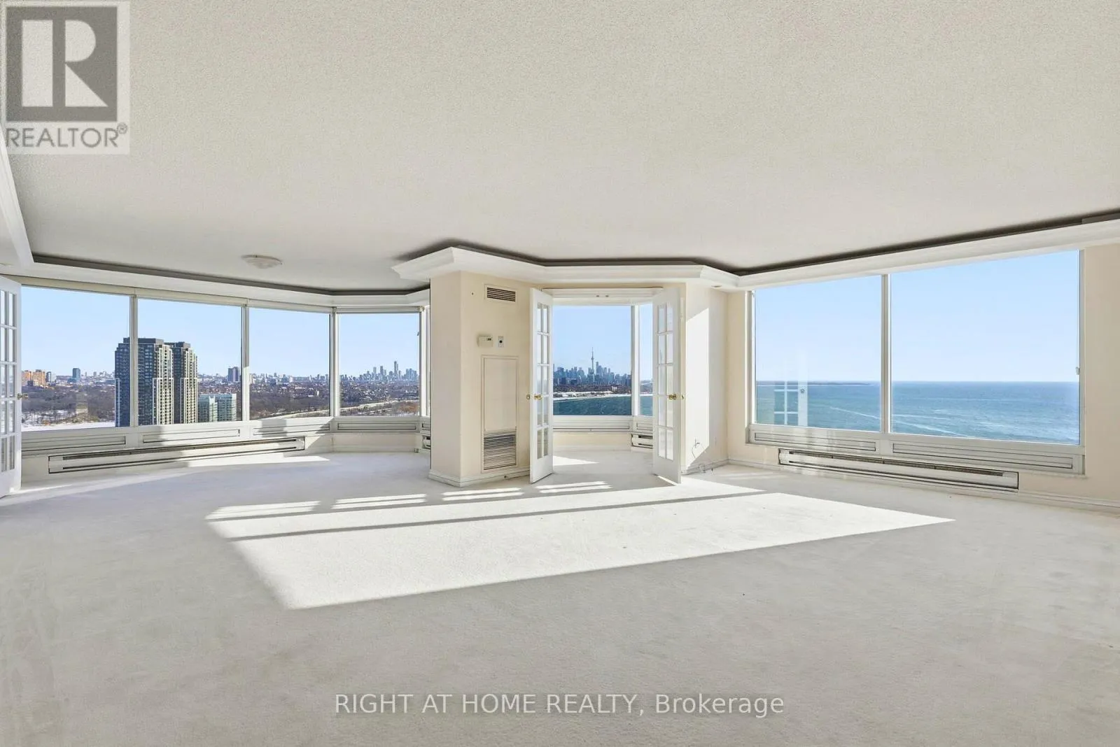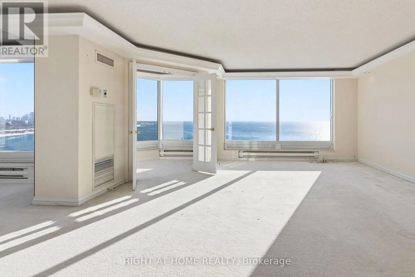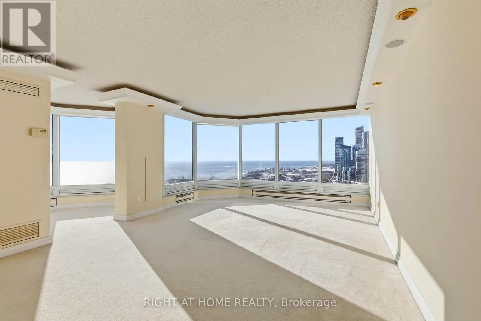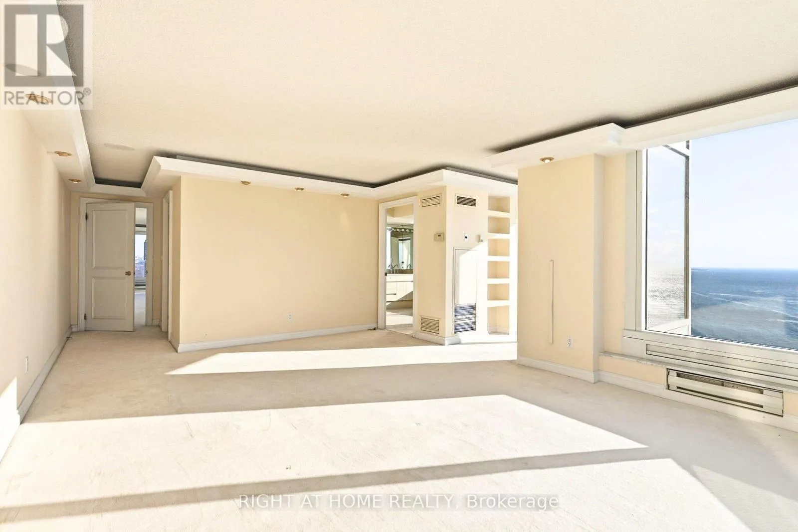 Morning light, golden afternoons, and sunset glow -every day has a different mood. The living and dining areas are expansive and naturally elegant, finished with classic crown moulding and tray ceilings, and designed for both entertaining and quiet, private moments. A bright, view-filled kitchen with stone counters and an oversized island keeps the backdrop front and centre-water, sky, and city. The primary suite delivers the same wow factor, complemented by a generous ensuite where the lake becomes part of your morning routine. All of this, in a building known for service and lifestyle, valet, concierge, private shuttle, and resort-style amenities. Schedule your private showing today and experience Suite 3203 in person. (id:27476)