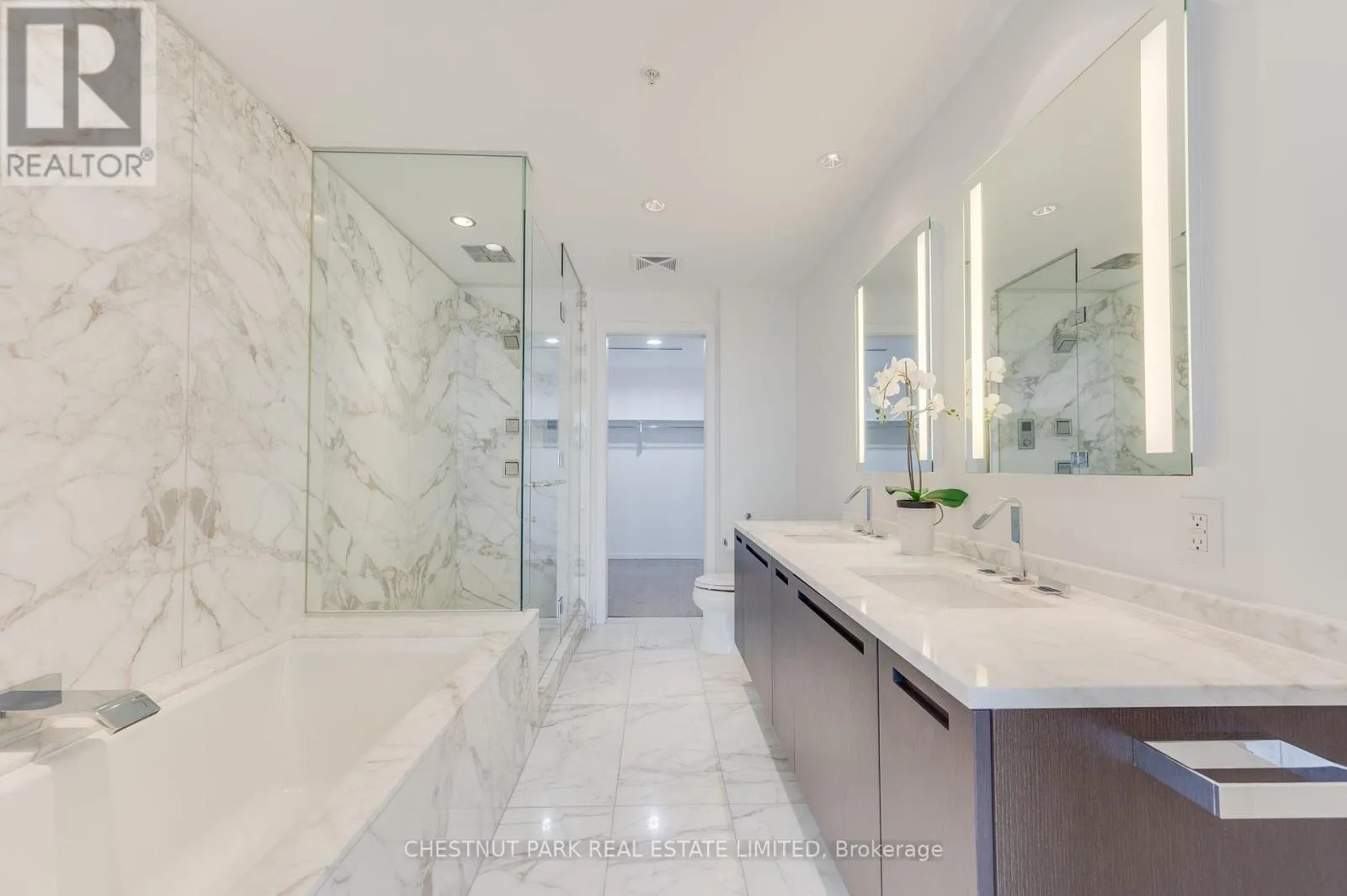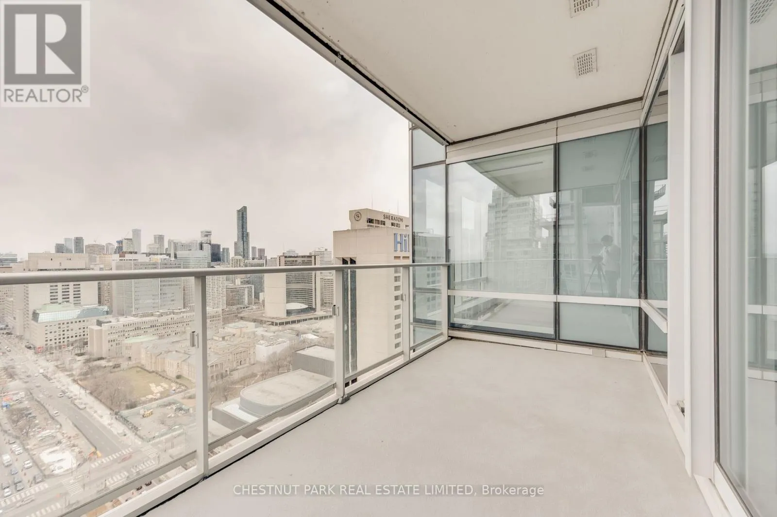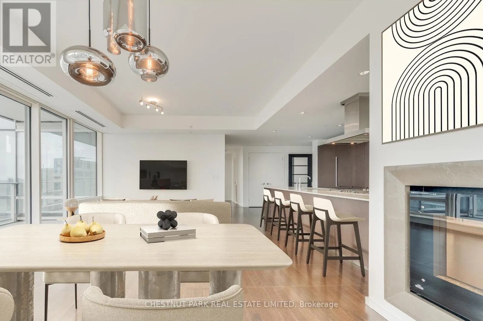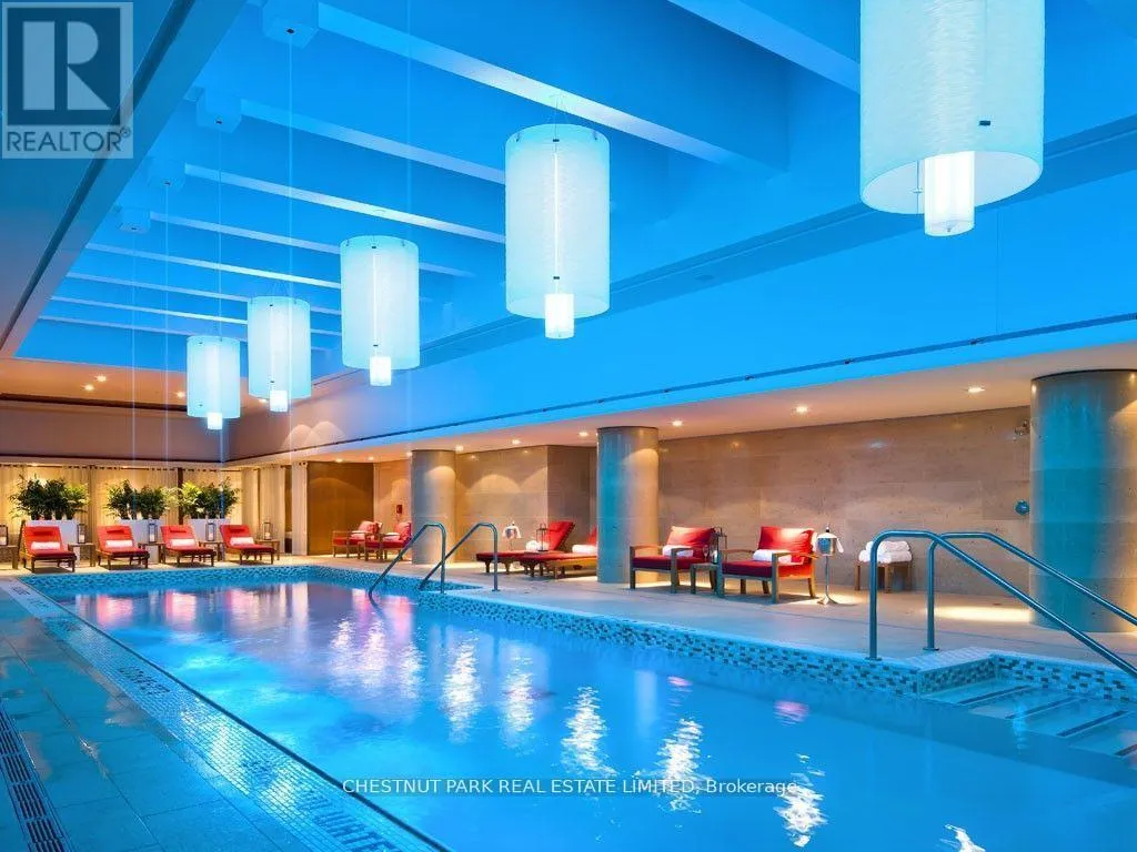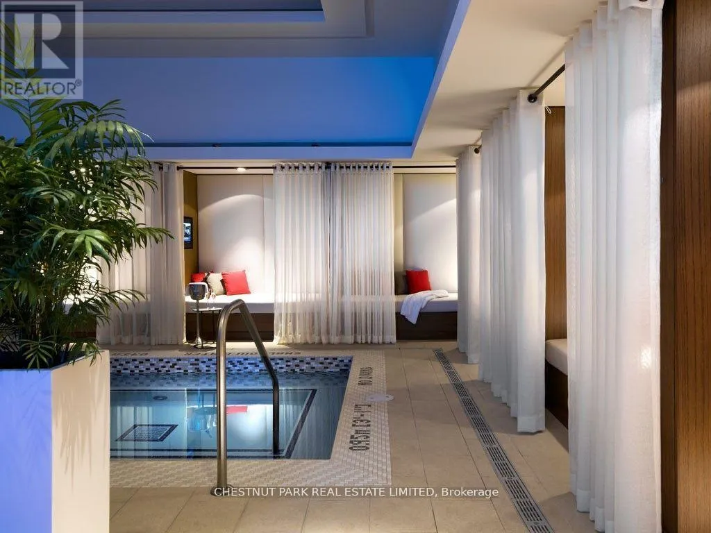 Surrounded by floor-to-ceiling windows, the residence is filled with natural light and showcases spectacular city views up University Avenue toward Queen's Park. The thoughtfully designed open-concept living and dining area flows seamlessly into a gourmet kitchen-perfect for entertaining-featuring premium finishes and top-of-the-line appliances, including a new Miele gas stove. The spacious primary retreat offers a luxurious five-piece ensuite and walk-in closet, while the second bedroom includes its own three-piece bathroom and closet, providing comfort and privacy for guests or family. Just off the main living area, the enclosed den with sliding doors creates an ideal home office or flexible workspace. Residents enjoy access to world-class hotel-style amenities, including 24-hour concierge, a state-of-the-art fitness centre, indoor pool, and sauna. Perfectly situated in the Financial and Entertainment Districts, this exceptional residence is steps to the subway, the underground PATH system, theatres, and cultural landmarks such as Roy Thomson Hall, along with some of the city's finest dining . A rare opportunity to enjoy luxury hotel living with the privacy of an exclusive residence in one of Toronto's most prestigious buildings. * Electric fireplace is 'as is' condition. (id:27476)