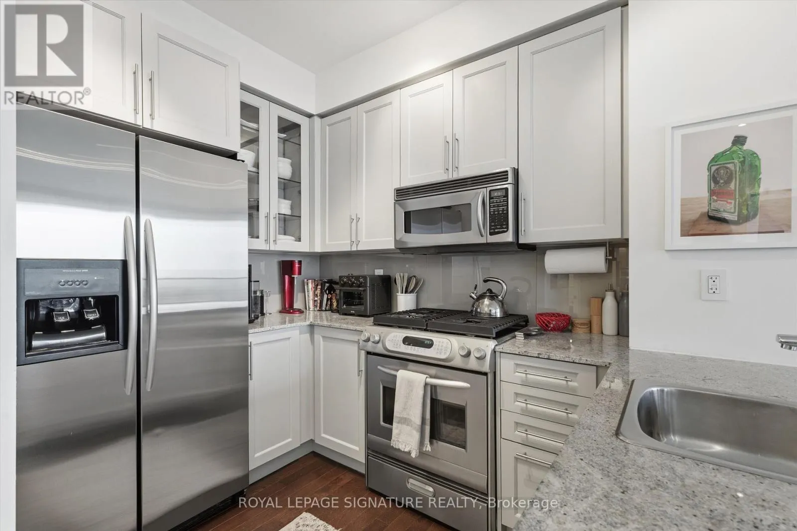 The southern exposure and floor to ceiling windows leave this unit drenched with natural light all day long. The unit features modern finishes throughout with full sized appaliances and a gas stove! The kitchen island is ideal for entertaining. Enjoy an oversized primary bedroom that easily fits a king sized bed with spa like ensuite and a spacious walk in closet. Building amenities include a fully equipped gym, party room, guest suite, visitor parking, roof-top terrace with gas BBQs and excellent security. Ideally located close to fine dining, night life, parks, TTC, St Lawrence Market, Union Station the financial core and much more. (id:27476)