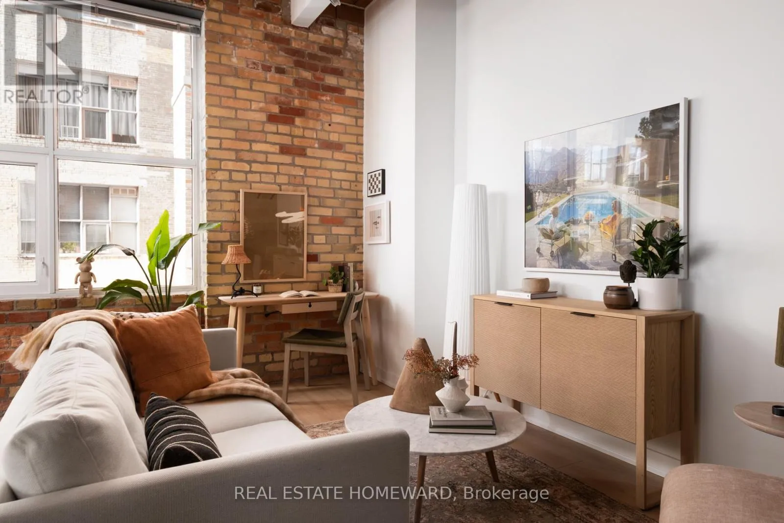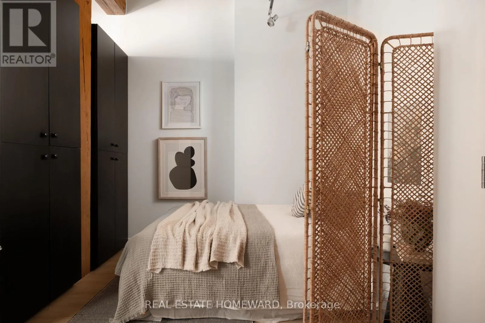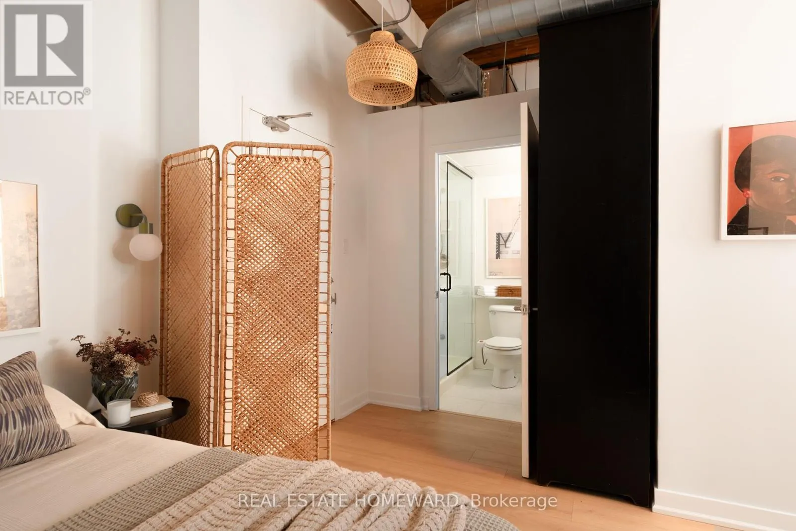 The open-concept living, dining, and kitchen area has been completely reimagined with new flooring, brand-new cabinetry and countertops, and a newly installed heat pump ($8,500) provides efficient year-round heating and cooling. The kitchen offers space to dine in, while the generous living area allows for various flexible configurations (see various layouts in the photography). The washroom has been updated with a sleek new glass shower enclosure, adding a polished, contemporary finish. The bedroom is well proportioned and quietly tucked away, offering comfortable separation and ample closet space. In-suite laundry adds everyday practicality. Located directly across from Trinity Bellwoods Park, the setting is truly exceptional. Step outside to enjoy the very best of Queen West - acclaimed cafés, restaurants, boutiques, and convenient transit - all with the park as your front yard. A rare chance to own a renovated hard loft in a landmark building - where historic character meets modern comfort in one of Toronto's most coveted neighbourhoods. (id:27476)