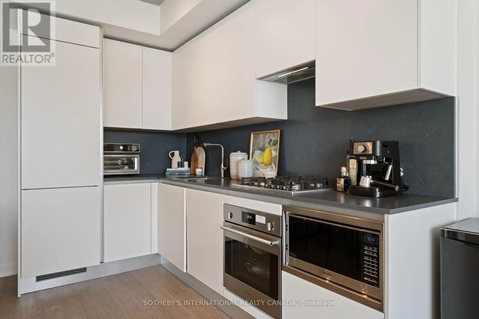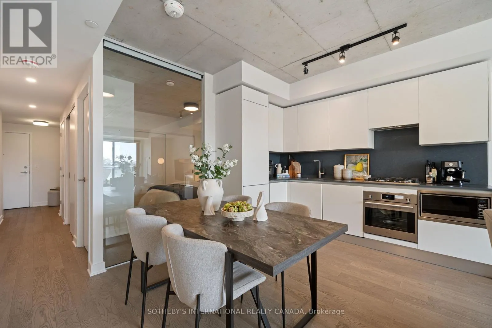 Warm light wood flooring flows seamlessly throughout the unit, adding a natural elegance to the contemporary interior. The Scavolini kitchen is a standout, featuring sleek integrated appliances, a gas range, and refined finishes that balance functionality with sophisticated style. The generously sized living room offers unobstructed views, providing an inviting space to relax or host guests. The bright bedroom includes a large closet and continues the home's theme of comfort and natural light. The well-appointed four-piece bathroom is finished with clean, modern detailing for a spa-like feel. Residents of The Junction House enjoy exceptional building amenities, including a professional co-working space, a high-end fitness and wellness gym, and a stunning rooftop terrace complete with BBQs, fire pits, and a dedicated dog area-ideal for both relaxation and social gatherings. A perfect balance of style, comfort, and convenience in a landmark development. (id:27476)