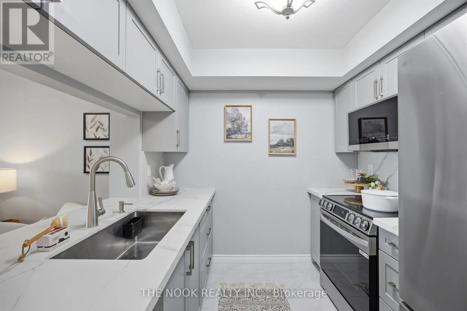 Cross Streets: Kennedy and Ellesmere. ** Directions: North on Ellesmere from Kennedy Raod. Welcome to the best one-bedroom opportunity in the area - a beautifully fully renovated, move-in-ready condo that truly stands out from the rest!This bright and spacious home has been thoughtfully upgraded with stylish, modern finishes throughout. The stunning kitchen features brand-new stainless steel appliances, sleek quartz countertops, and elegant porcelain flooring, creating a contemporary space that is perfect for cooking and entertaining.