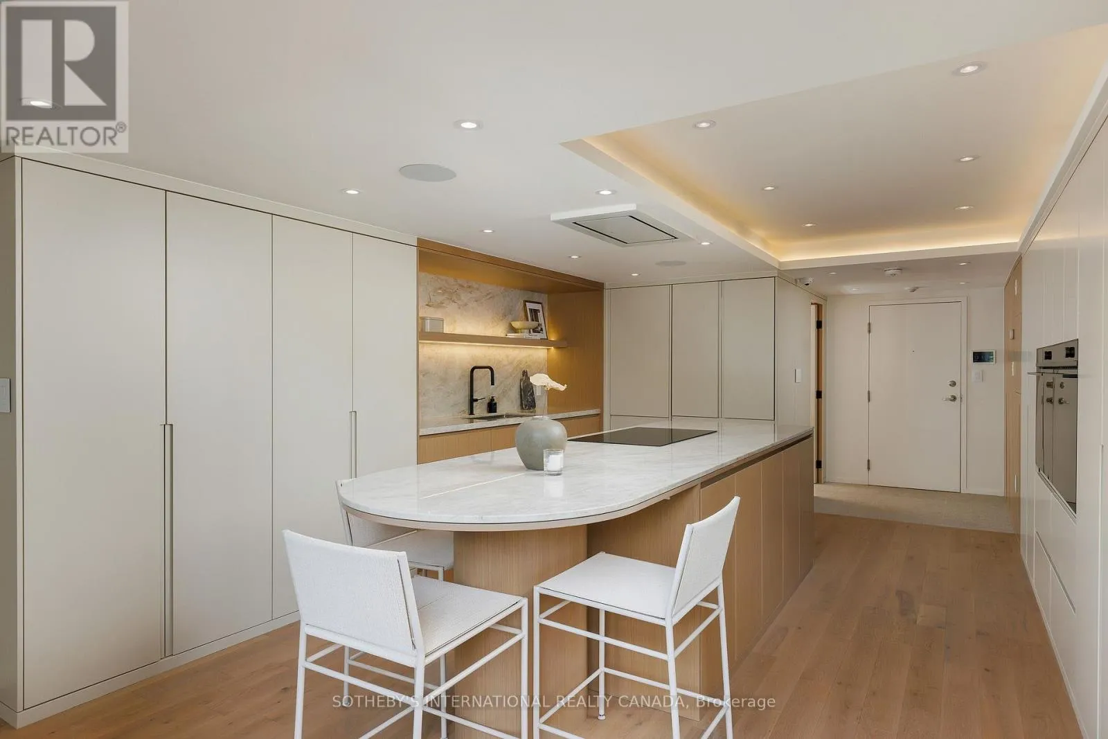 Here, Fisher & Paykel appliances and Taj Mahal quartz countertops pair with a striking Audo Copenhagen chandelier above the dining table, creating a seductive balance of function and elegance. From this level, a sculptural spiral staircase with integrated lighting and a private three-level elevator rises through the home, connecting each dramatic floor above. The second level offers a versatile family/media room with an office nook overlooking the main floor, enhanced by a full bathroom, allowing the space to double as a private guest retreat or additional bedroom as needed. The third-level great room is the heart of the home: crowned with a soaring 29-foot cathedral ceiling and flanked by Crittall-inspired industrial windows that flood the space with natural light. Anchored by a floor-to-ceiling custom steam fireplace and illuminated by a sculptural New Works chandelier, the room is a masterpiece of scale and atmosphere, complemented by a wet bar, exposed brick, and herringbone floors. The indulgent primary suite isa private sanctuary featuring vaulted ceilings, custom built-ins and a breathtaking luxurious 5-piece ensuite. A second bedroom, additional bathrooms, and a fourth-level glass-railed home office loft with commanding views over the great room, complete this extraordinary residence. Located atop the Junction Triangle, one of Toronto's most sought-after neighbourhoods, this rare home features two underground parking spaces, a convenient storage locker, and unmatched style, space, and sophistication. (id:27476)