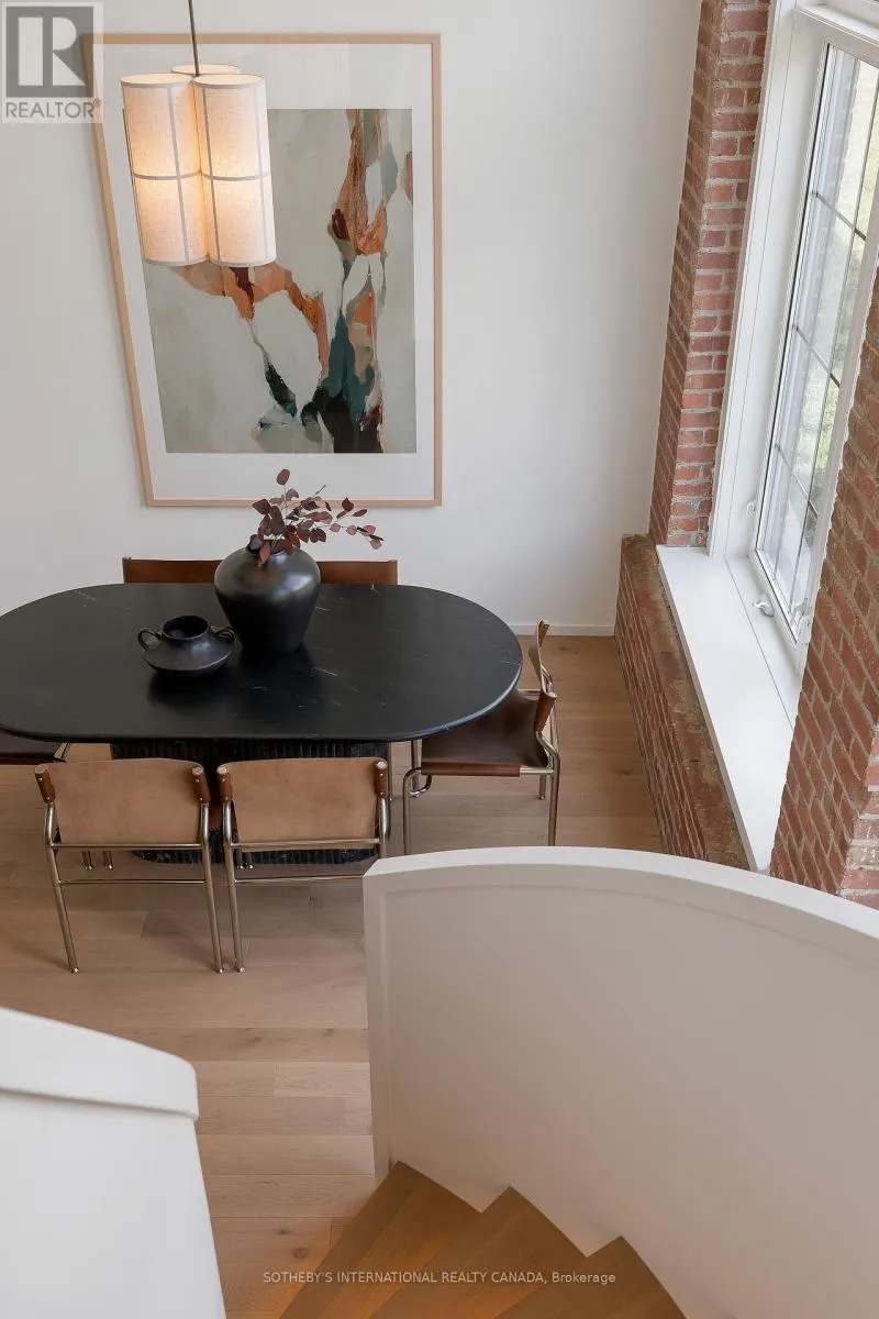 Lansdowne & Davenport Rising four dramatic levels, this architecturally significant 2,757 Sq Ft residence in Toronto's historic Foundry Lofts is a rare showcase of scale, history, and contemporary design. Every detail of this newly reimagined hard loft has been carefully curated, blending bespoke finishes with soaring volumes of space. The main level welcomes with a light-filled gourmet kitchen and dining area framed by exposed brick and expansive two-storey windows.