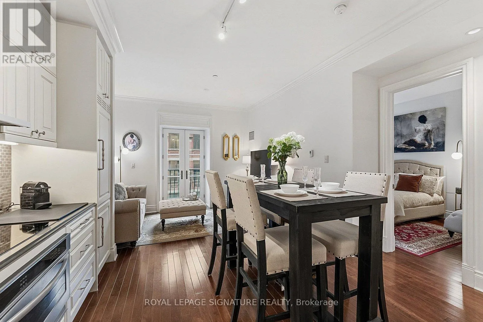 King Street & Yonge Street Welcome To Unit 339 at The King Edward Private Residences. Available Fully Furnished. Step into an elegant foyer leading to a modern kitchen with custom cabinetry and integrated appliances, complemented by a separate breakfast nook or office space. The kitchen overlooks the living room, where double doors open to a Juliette balcony with views of King Street East.This one-bedroom suite features a large closet and a 4-piece spa-inspired ensuite.