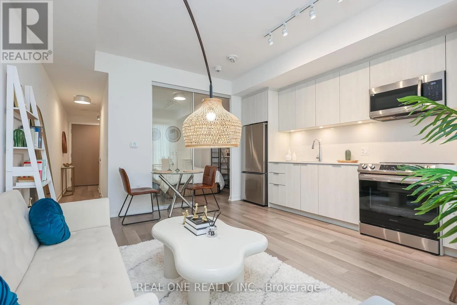 King/Blue Jays 2 Years Old Luxury 1B1B Corner Unit. The suite features 9-foot ceilings, floor-to-ceilingwindows, and an open-concept layout. The living and dining areas are spacious, and the kitchen is equipped withstainless steel appliances, All Wide-Plank Laminate Throughout, Contemporary Slab Door Kitchen Cabinets W/ Stone Countertop, and Ample cabinet space. Extremely convenient transportation with easy access to the Financial District,the University of Toronto, and the CN Tower.