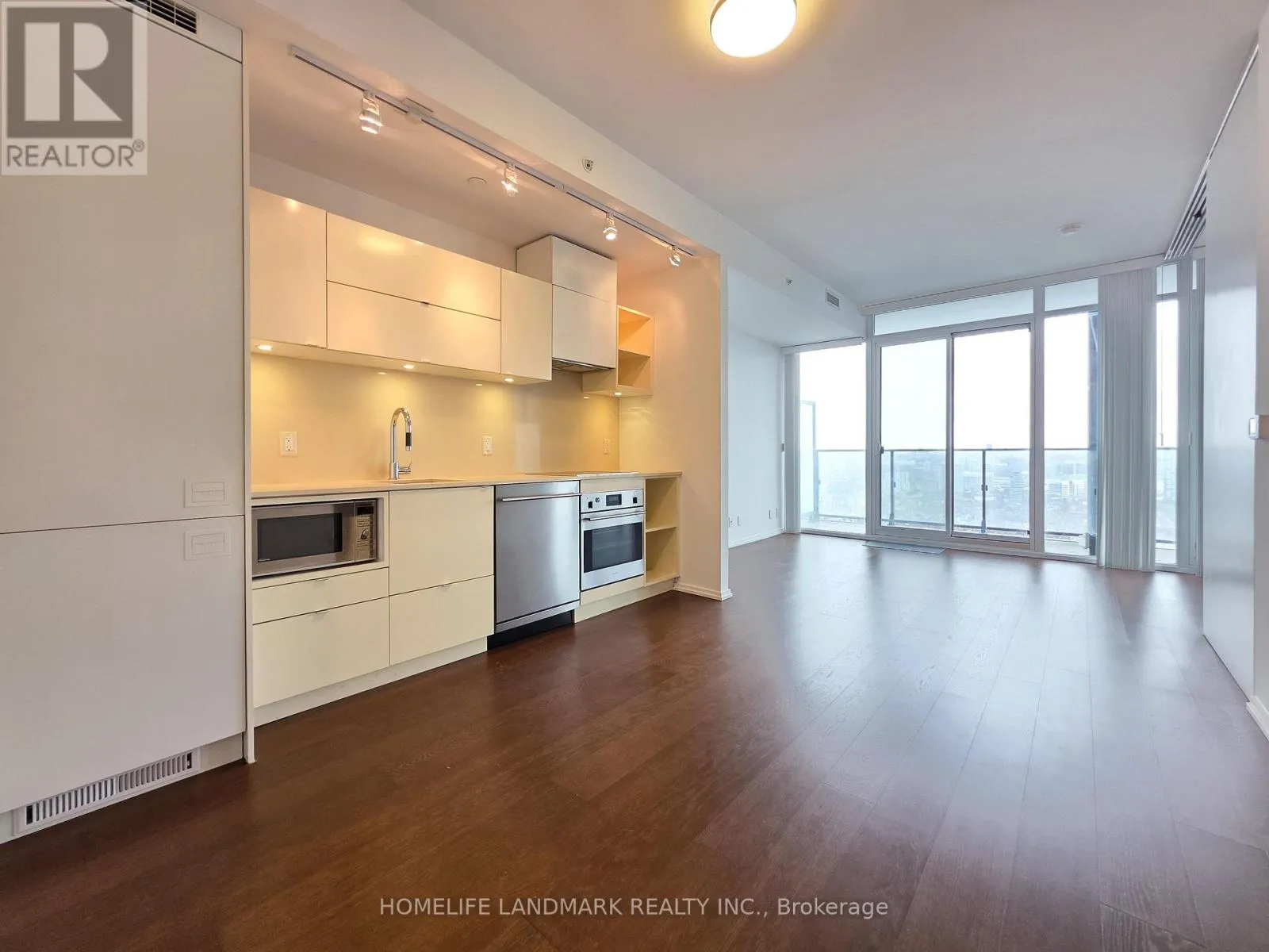 Enjoy ***a sleek, crisp white MODERN KITCHEN with STONE COUNTERS as well as integrated and STAINLESS STEEL APPLIANCES ***590sqft of open concept space plus a 105sqft north facing BALCONY WITH STUNNING CLEAR CITY VIEWS ***floor to ceiling windows ***warm dark brown laminate flooring ***ensuite laundry ***wall-to-wall bedroom closets ***as well as SLIDING BEDROOM DOORS that can be drawn back for a light filled, airy, open concept feel. Call this dream suite your own! Perfect for new families looking for a fresh start, young professionals, and investors. Live just a short walk from shops, restaurants, cafes, Osgood TTC Station, Roy Thomson Hall, the Art Gallery of Ontario, Grange Park, Nathan Phillips Square. Approx. 20 minutes walk to the University of Toronto. Amenities include: ROOFTOP TERRACE, gym, yoga studio, theater room, games room, billiards room, reading room, guest suite, party room, conference room, and 24 hour concierge. (id:27476)