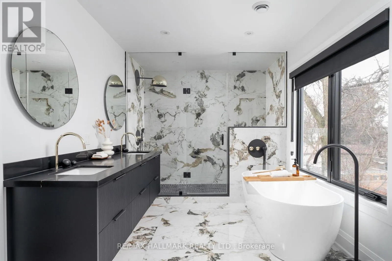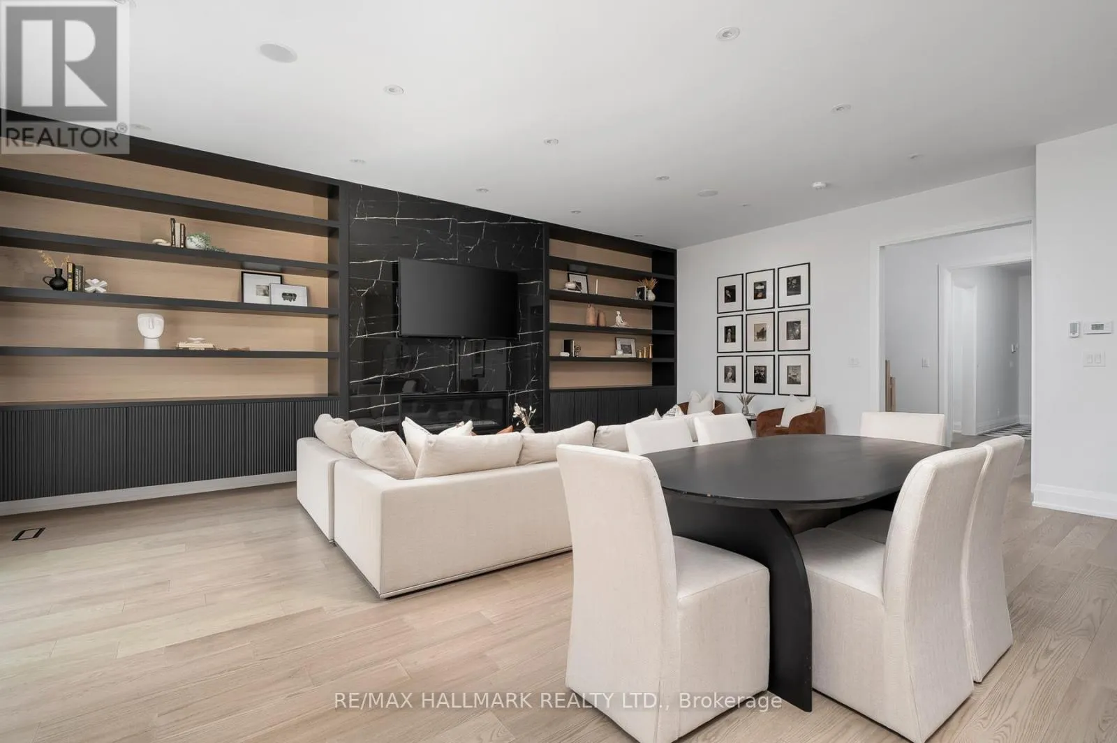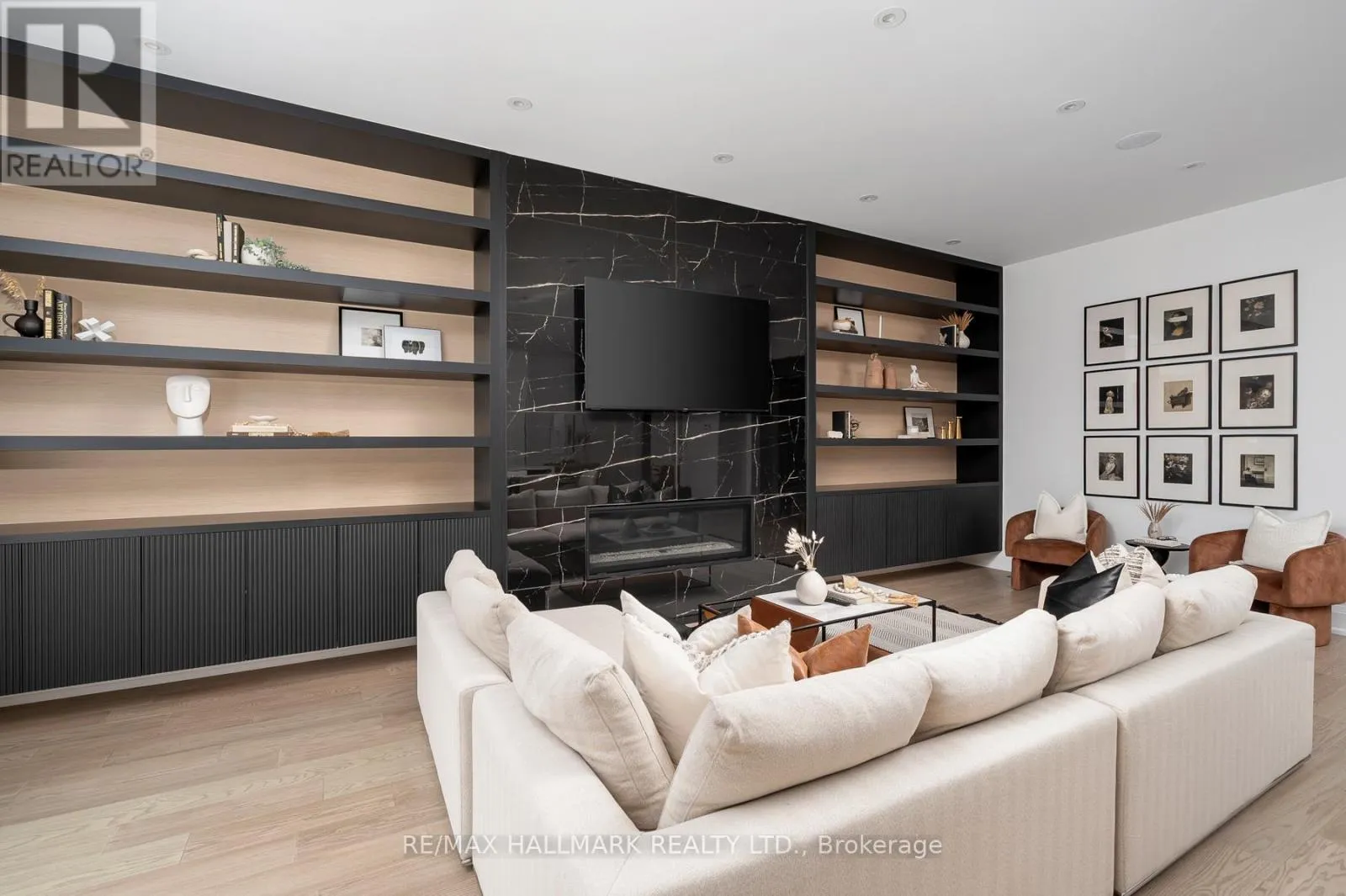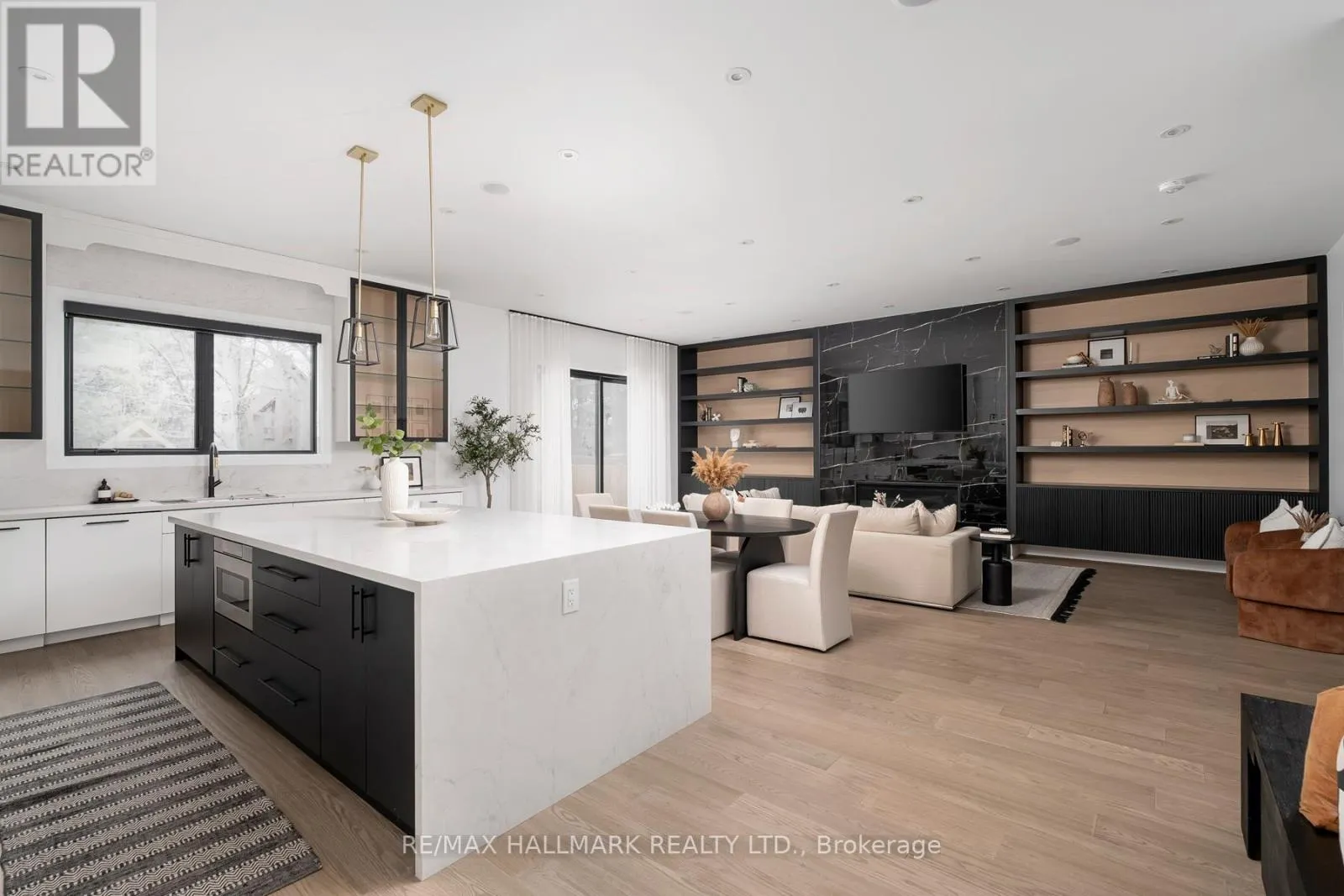 Inside, soaring ceilings, hardwood floors, quartz countertops, quartz TV/Fireplace mantel & polished porcelain tile in all bathrooms, abundant natural light from large windows throughout& a seamless open-concept layout create an elegant & welcoming atmosphere. The main flr offers a grand foyer with closets, a versatile office, a powder room & access to the garage. The expansive chef's kitchen with S/S appliances, pot filler, large pantry with wine fridge & oversized center island is combined with the dining area & a cozy living room featuring a striking custom stone fireplace & TV mantel with custom millwork. Sliding doors lead to a large, private fenced backyard with an interlocking patio, ideal for outdoor living & entertaining. The 2nd Flr showcases a luxurious primary retreat complete with a spa-like 5PC ensuite with heated floors, a custom designed W/I closet & a 2nd W/I closet. A 2nd bed includes a 4PC ensuite & double closet, while two additional bedrooms, each with double closets, share a 4PC bathroom. A convenient laundry room with sink, cabinetry & a linen closet completes this level. The high-ceiling finished basement with W/O & radiant floor heating offers exceptional flexibility, featuring two additional bedrooms & a second kitchen with living area, a spacious family room & a cold room, an area perfect for in-laws, guests, or extended family. Additional highlights include a sound system on the main floor & backyard, & security cameras. Located in a quiet & sought-after pocket of Clairelea, this remarkable home delivers the perfect blend of elegance, comfort & functionality. (id:27476)