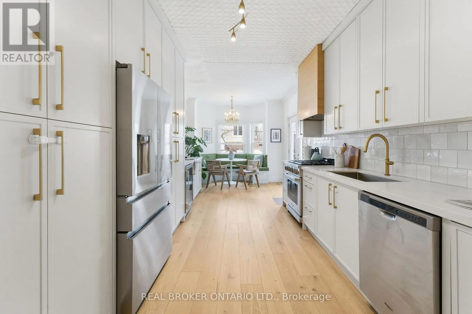 The main floor features 10-foot ceilings, large windows, and white oak floors. A chef's kitchen with Dacor range and fridge, custom cabinetry, and a built-in banquette opens to a private deck and backyard. The upper level offers generously sized bedrooms, a renovated bathroom, and second-floor laundry. Architectural drawings available for a potential third-floor luxury primary retreat. Steps to local cafes, shops and restaurants, Riverdale Park. (id:27476)