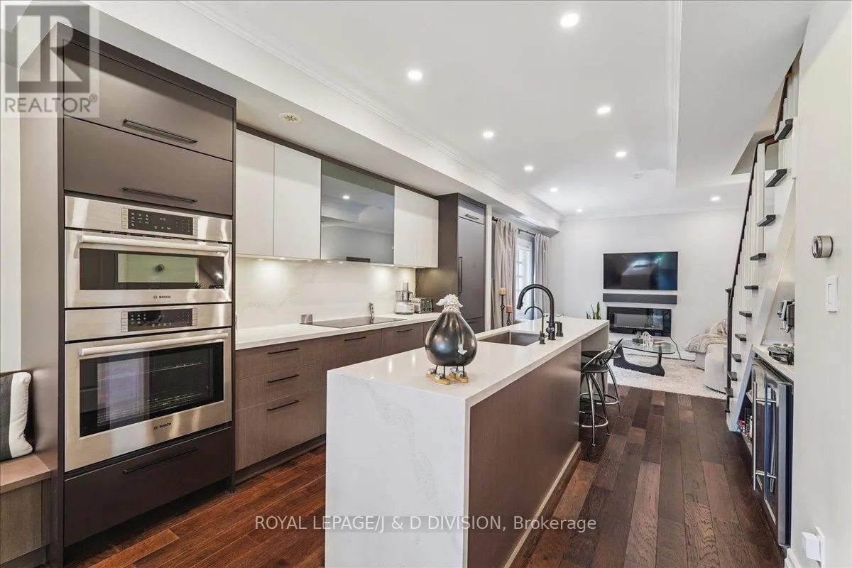 The gourmet kitchen features Bosch stainless steel appliances, quartz waterfall countertop, a wine fridge, a fabulous island with seating, plus a built-in banquette for cozy meals. The home is further enhanced with hardwood floors throughout, pot lights, ceiling speakers, crown moulding, and an elegant electric fireplace on the main floor. The luxury bathrooms and gourmet kitchen are sleek and contemporary. The spa-like primary ensuite with marble accents has a heated floor, large steam shower with rainfall shower head and oval free standing tub for indulgent relaxation. Offering a landscaped front garden or step out to the upper terrace among the treetops to linger, breath deeply and listen to the birds. This home is truly an oasis in the city. With four spacious bedrooms, two and a half baths, and custom built-ins including wall to wall closet in the primary bedroom is ideal for those who appreciate thoughtful design. Two side by side parking spots in the underground garage, proximity to popular city corners and the subway further elevate this townhomes appeal. Located just steps from the soon-to-be-completed Crosstown LRT line stop at Mt. Pleasant, youll enjoy seamless transit access. Plus, the green spaces of Sherwood Park, Blythwood Ravine, Mt. Pleasant Cemetery, and Sunnybrook provide the perfect natural escape. Visit and see so much more in this special home. (id:27476)