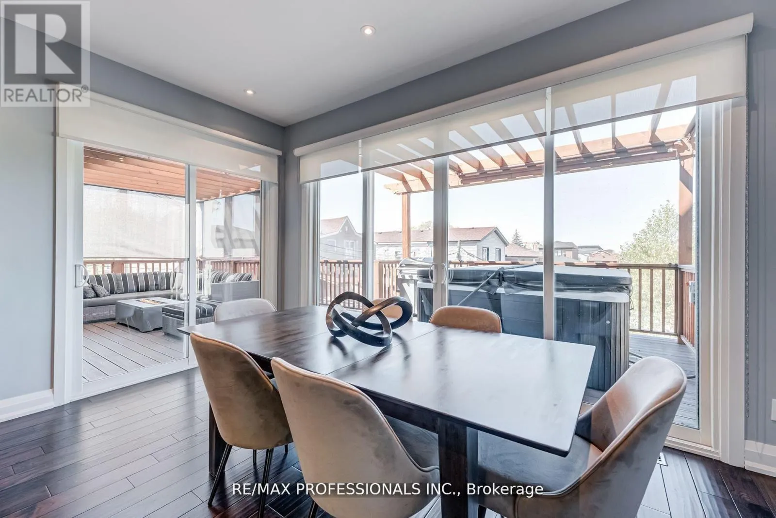 Double patio doors extend the living and dining areas onto a spacious composite deck, creating seamless indoor-outdoor flow. The private backyard retreat includes multiple walkouts, a dedicated hot tub zone, separate seating area, five roll-down privacy screens, and a ceiling irrigation system beneath the deck that efficiently waters the landscaped garden. A main-floor office (or potential fifth bedroom) sits beside a full bathroom, perfect for guests or extended family. Upstairs, the oversized primary suite features a spa-like ensuite and custom walk-through closet, while all upper bedrooms offer walk-in closets and large windows for excellent natural light. The walk-out lower level includes a fully self-contained 2-bedroom suite with private entrance, patio, laundry, and lock-off zones-ideal for extended family or a high-demand rental ($2,500/month potential) to help offset monthly costs. Additional features include CAT5E wiring, 200-amp service, Nest thermostat, CCTV, built-in surround sound, backwater valve, private drive, and single-car garage with storage. Located approximately a 15-minute walk to both Keele and Caledonia stations on the newly opened Line 5 Eglinton LRT, this area now benefits from fast, mostly underground transit and city-led community investment. Minutes to downtown, Yorkdale, the airport, The Junction, and Stockyards-this home delivers space, smart upgrades, transit connectivity, and strong long-term value. (id:27476)