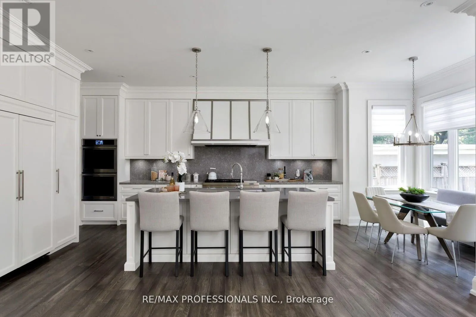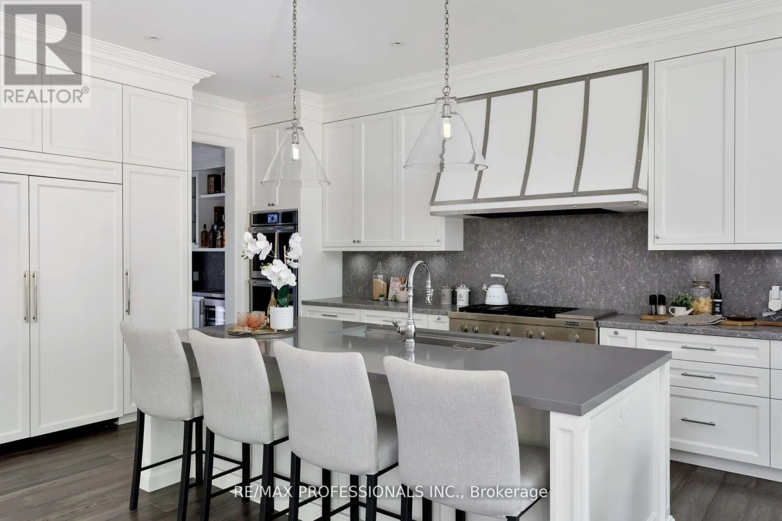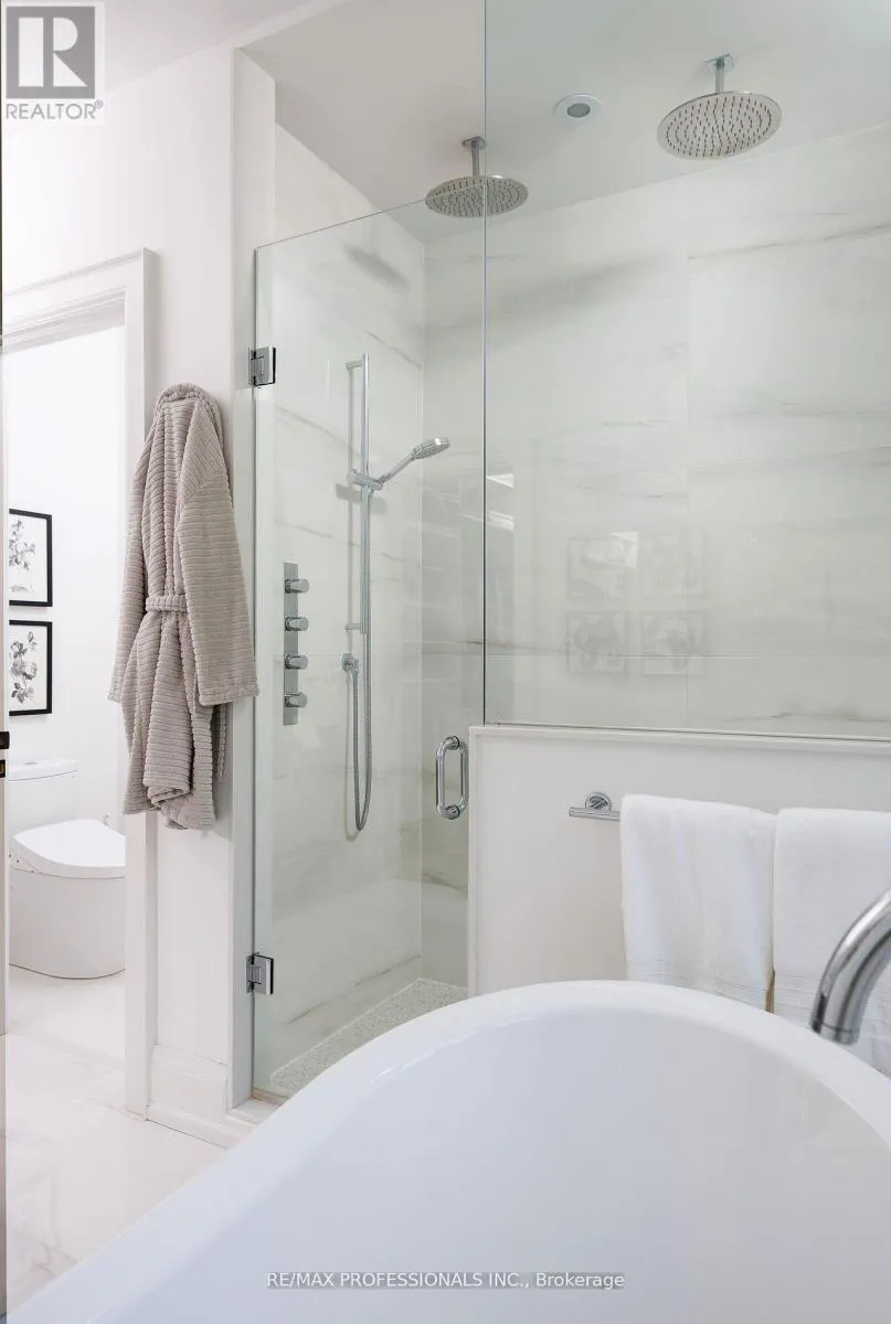 Blaketon Rd & Burnhamthorpe An unparalleled blend of luxury & design in one of Etobicoke's most desirable, family-friendly neighbourhoods. Built in 2019 by award winning Kingsway Custom Homes and designed by highly sought after Justine Soler this residence exhibits quality & taste from the moment you step through the door. Large windows throughout fill the home with plenty of natural light. The custom Cameo kitchen is an entertainer's dream featuring a six burner gas range with custom deigned hood, integrated Jenn-Air and Miele appliances, servery with both beverage and wine fridges & walk-in pantry.