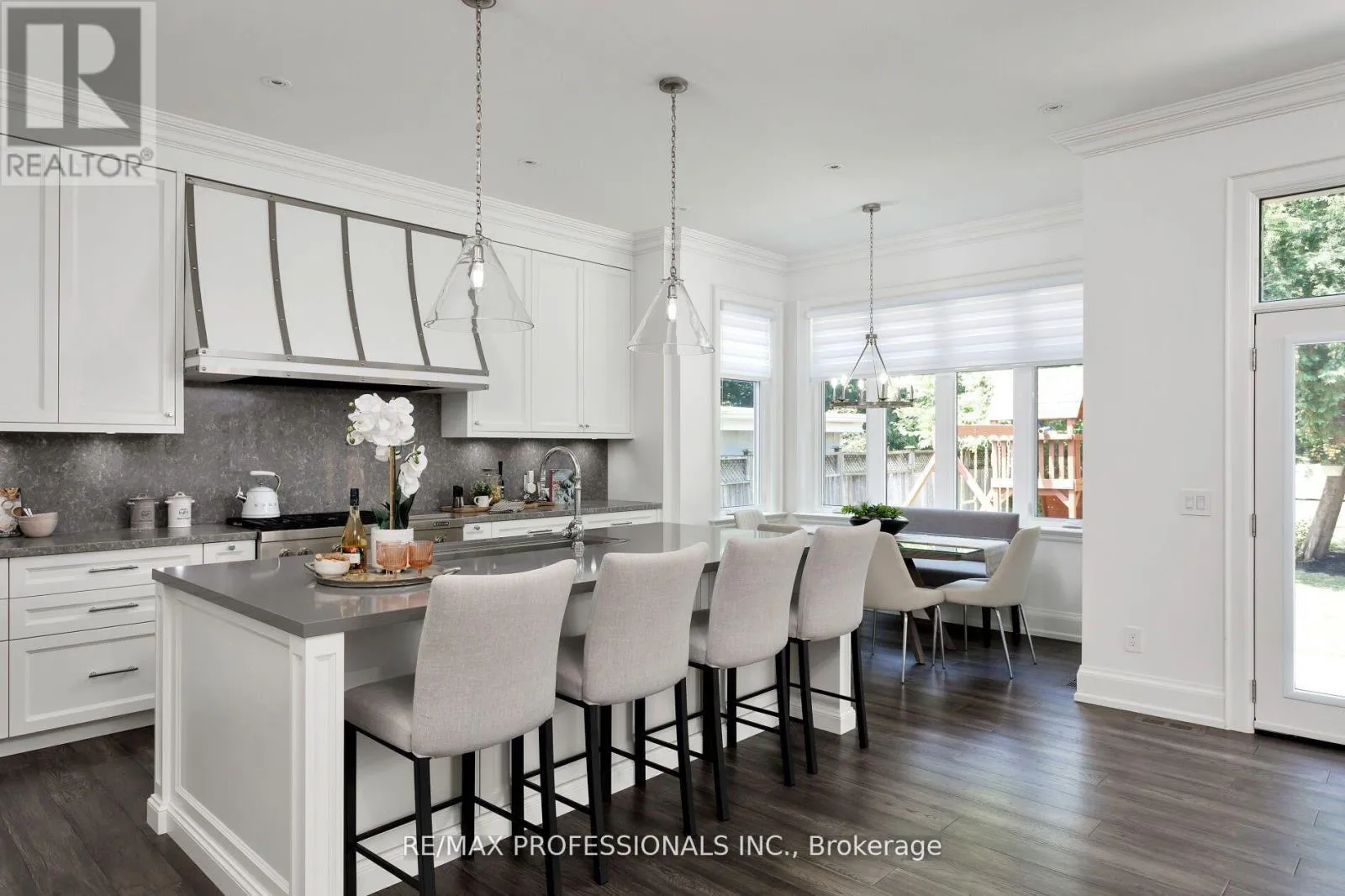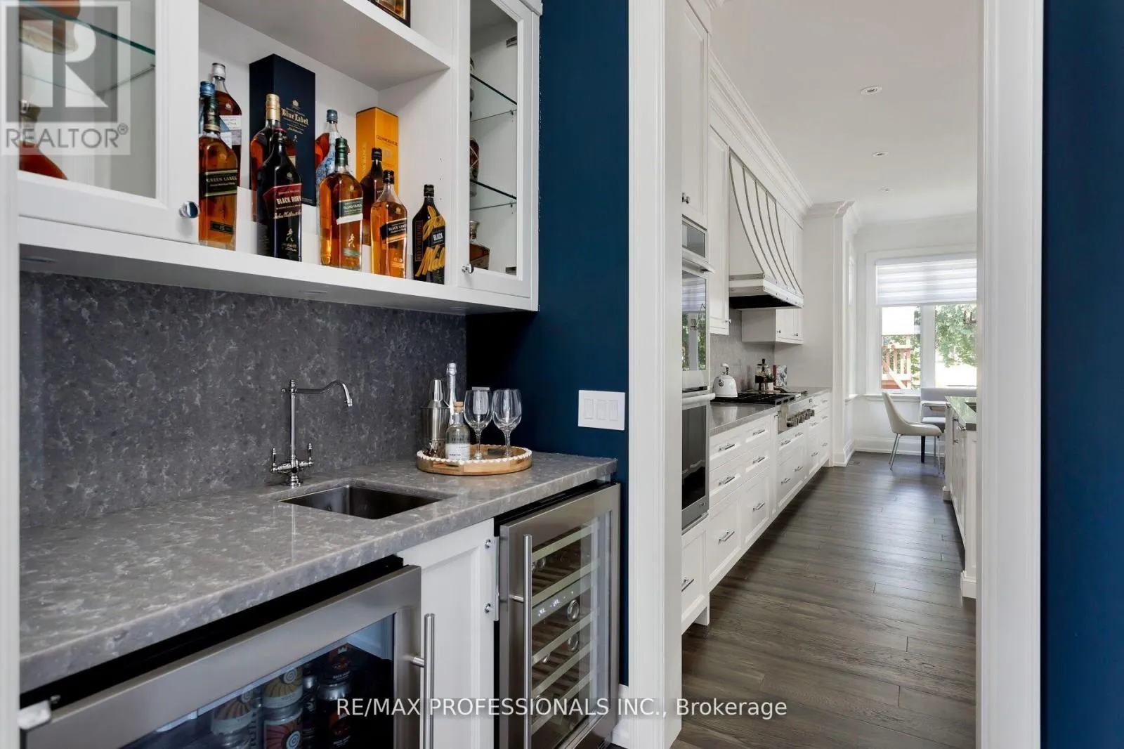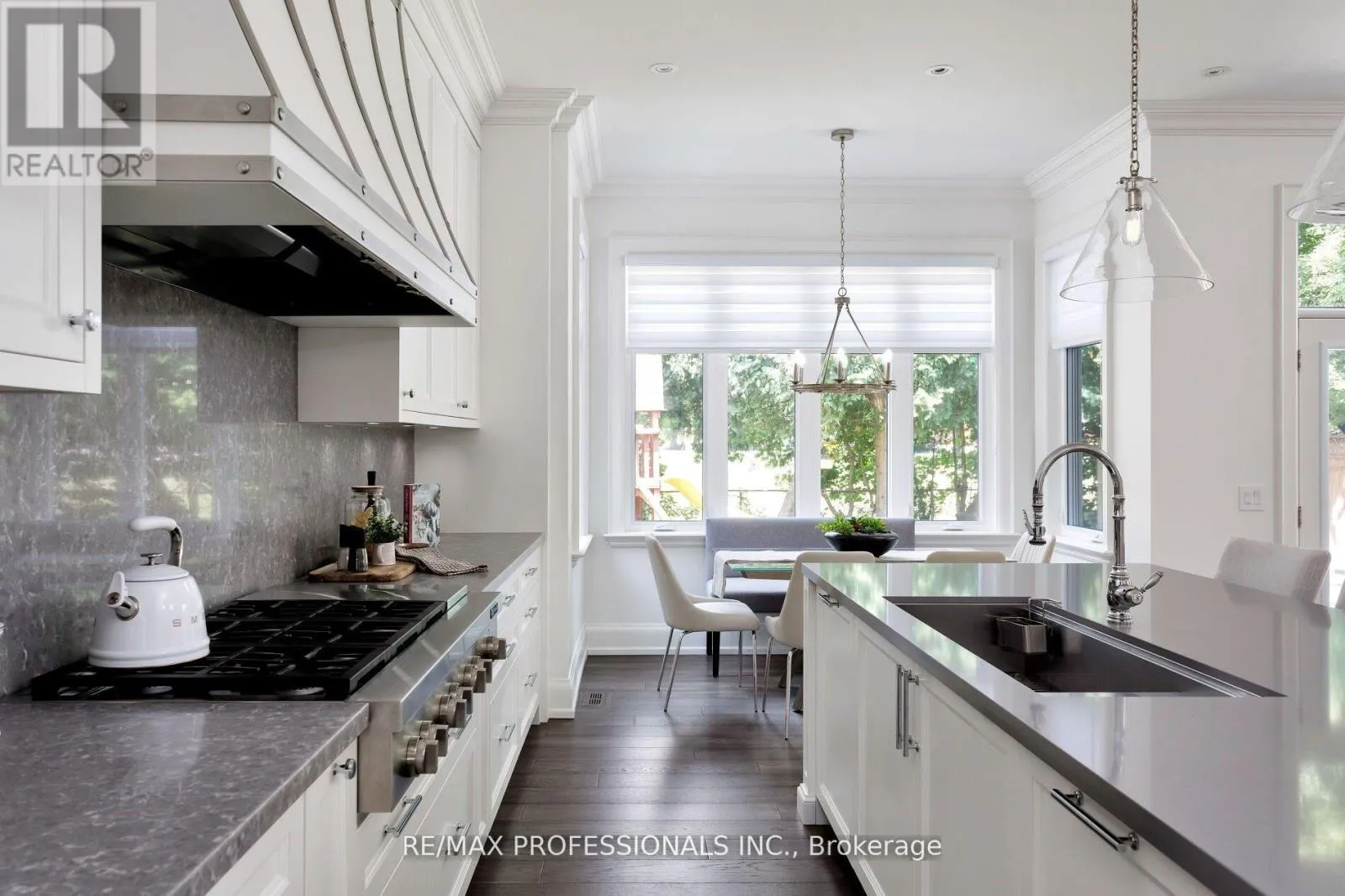 Blaketon Rd & Burnhamthorpe An unparalleled blend of luxury & design in one of Etobicoke's most desirable, family-friendly neighbourhoods. Built in 2019 by award winning Kingsway Custom Homes and designed by highly sought after Justine Soler this residence exhibits quality & taste from the moment you step through the door. Large windows throughout fill the home with plenty of natural light. The custom Cameo kitchen is an entertainer's dream featuring a six burner gas range with custom deigned hood, integrated Jenn-Air and Miele appliances, servery with both beverage and wine fridges & walk-in pantry.