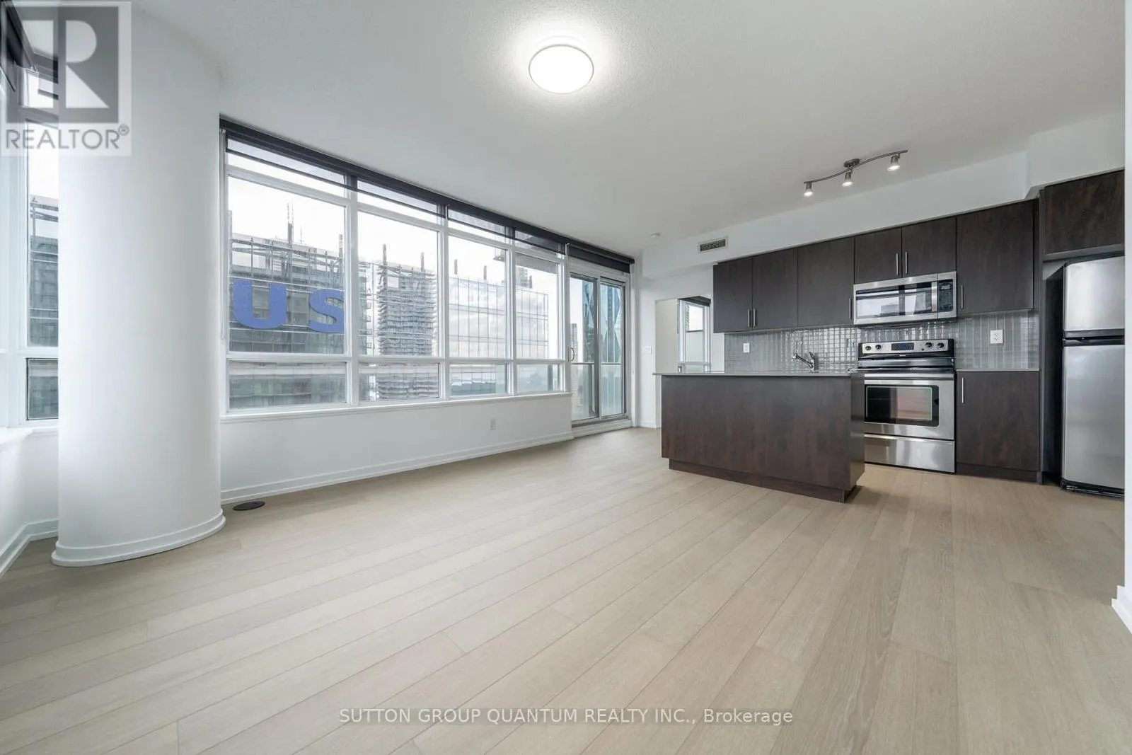York Street / Bremner Blvd. Welcome To The Residences Of Maple Leaf Square Located In The Heart Of Toronto's Harbourfront, Financial & Entertainment Districts. This High Floor 2 Bedroom + Study Corner Suite Features Approximately 788 Interior Square Feet. Designer Kitchen Cabinetry With Stainless Steel Appliances, Stone Countertops, An Undermount Sink & A Centre Island. Bright 9-Foot Ceiling With Wrap Around Windows, Customized Roller Shades & New Hardwood Flooring Throughout Facing C.