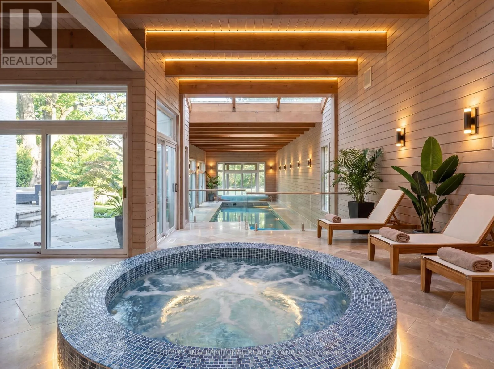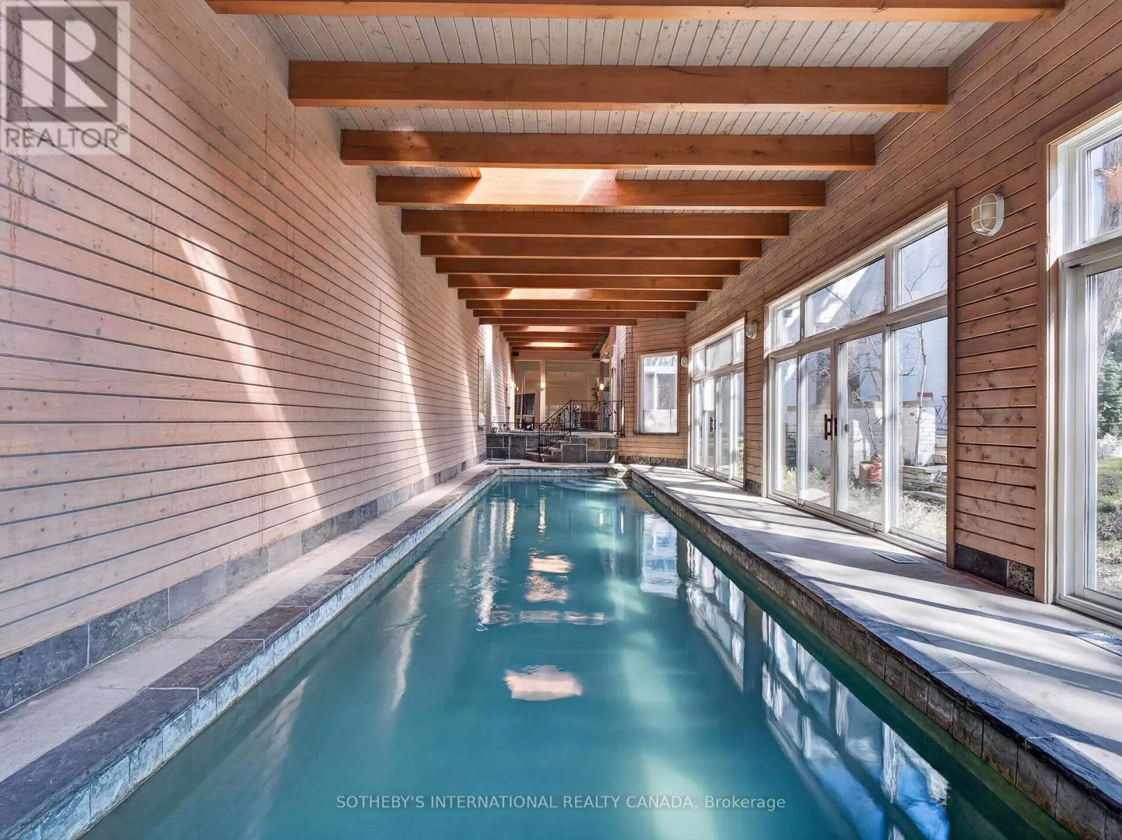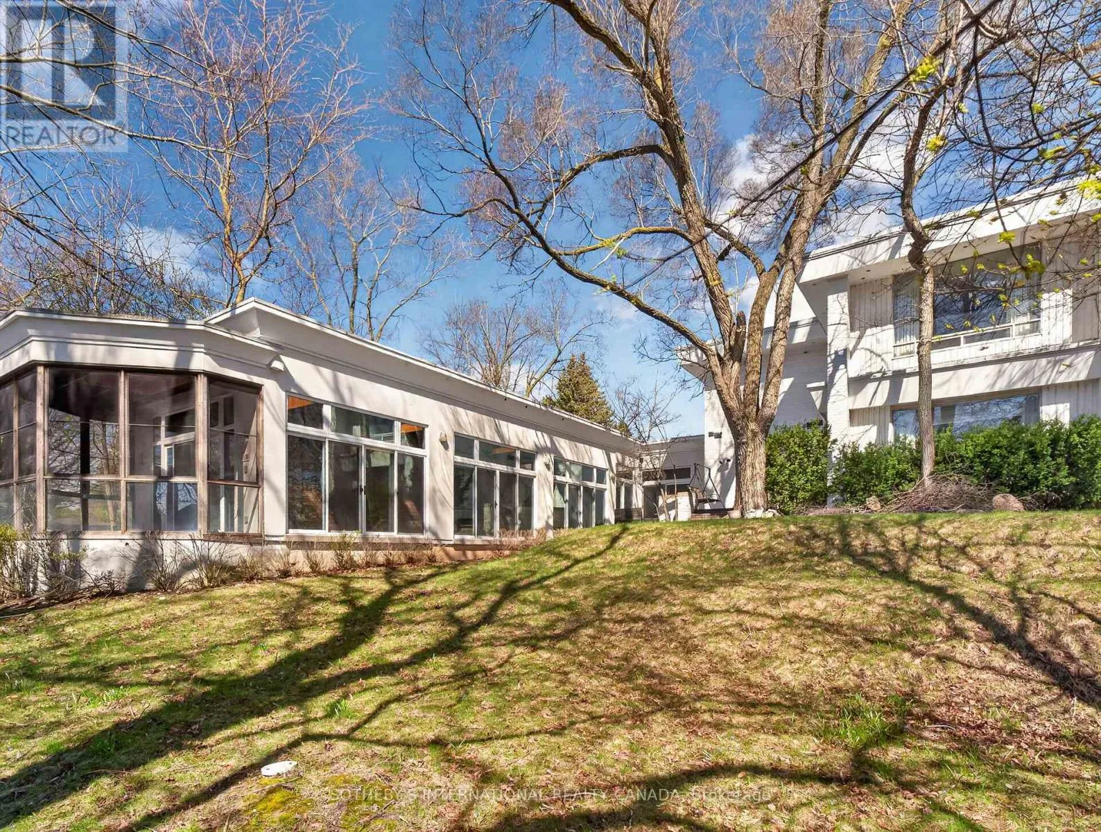 Approved severance allows two premium lots, effectively transforming one prominent residence into two and maximizing land value on one of the finest streets. The current mansion was built for an exceptional luxurious lifestyle that balances sumptuous entertaining and personal relaxation. Indulgence recreational amenities highlight an indoor saltwater pool, a circular hot tub, and a sauna that opens to a serene alfresco retreat for maximum comfort and wellness. Originally a Georgian, the mansion was reimagined by acclaimed architect Stanley Shenkman and interior designer Robert Dirstein into a striking modernist statement, defined by bold geometry, sweeping curves, and a flat roofline. Recognized for its distinctive aesthetic, once-famous black-changing-to-white exterior, the residence became a design icon after the radical redesign. Today, the home reflects the celebrated eclecticism and modernism, starring a teak paneled foyer, retro mid-century details, wall-to-wall windows, extensive use of skylights and French doors that bathed the interiors with natural light. This excellent location is also known for its extreme proximity to walkable social hubs, places of worship, and top-tier schools such as UCC, BSS, Holy Rosary, St Michael's, Robbins, Bialik, Leo Baeck, Forest Hill CI and more. Rich in architectural significance and cultural character, the legendary residence is a rarity offering in a highly coveted row renowned for its affluent scale, influential prestige, and enduring grandeur. (id:27476)