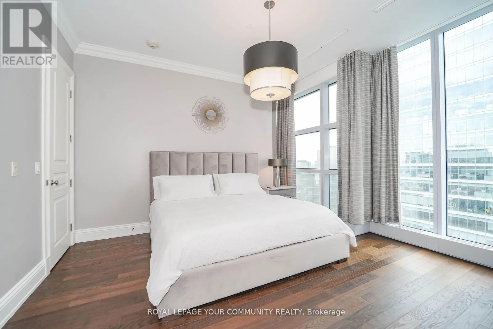 University/Wellington/Simcoe Luxury Residences Of The Ritz Carlton, Toronto. Experience upscale living in this spacious two-bedroom, two-bath residence featuring 10 ft ceilings and wrap-around floor-to-ceiling windows showcasing breathtaking panoramic views of Toronto's skyline. Wrap Around Tall Windows. Master bedroom with a large walking closet ,5-pc Ensuite bath ,Heated floor, Heated towel rack warmer.