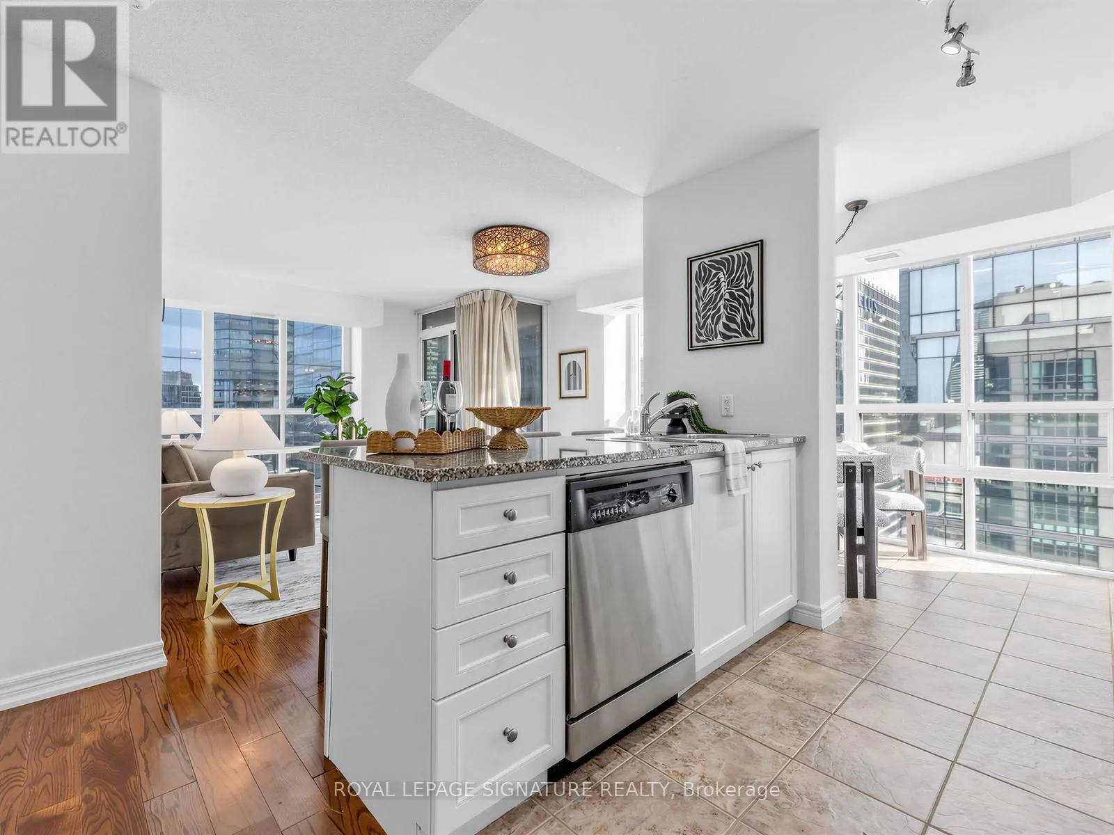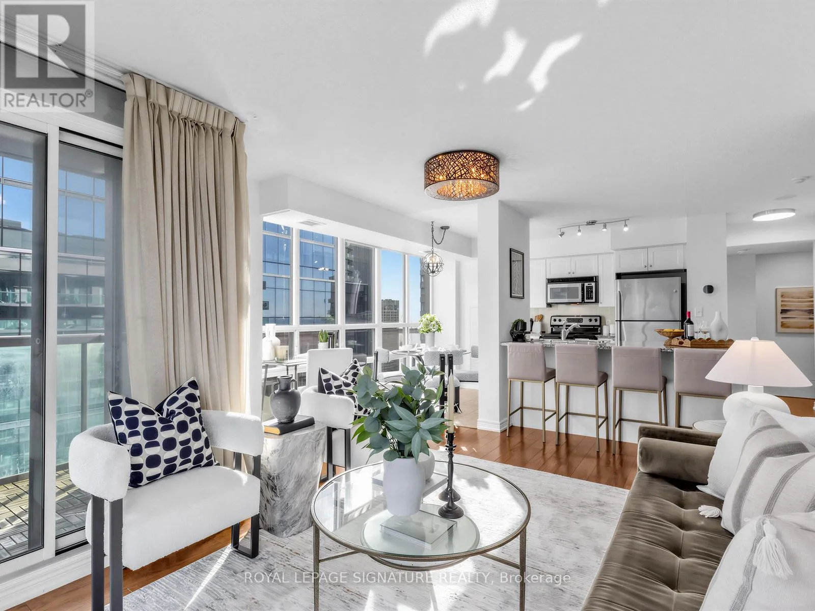 York & Bremner Exceptional corner unit condo that offers the perfect blend of luxury, comfort, and location.Boasting 2 spacious bedrooms and 2 baths including an en suite, this stunning home features windowsthroughout, flooding each room with natural light and offering panoramic views that are truly one ofa kind. Enjoy an unbeatable front-row seat to Toronto's skyline, with spectacular vistas overlookingthe iconic Scotiabank Arena, the majestic CN Tower, and the world-renowned Rogers Centre.