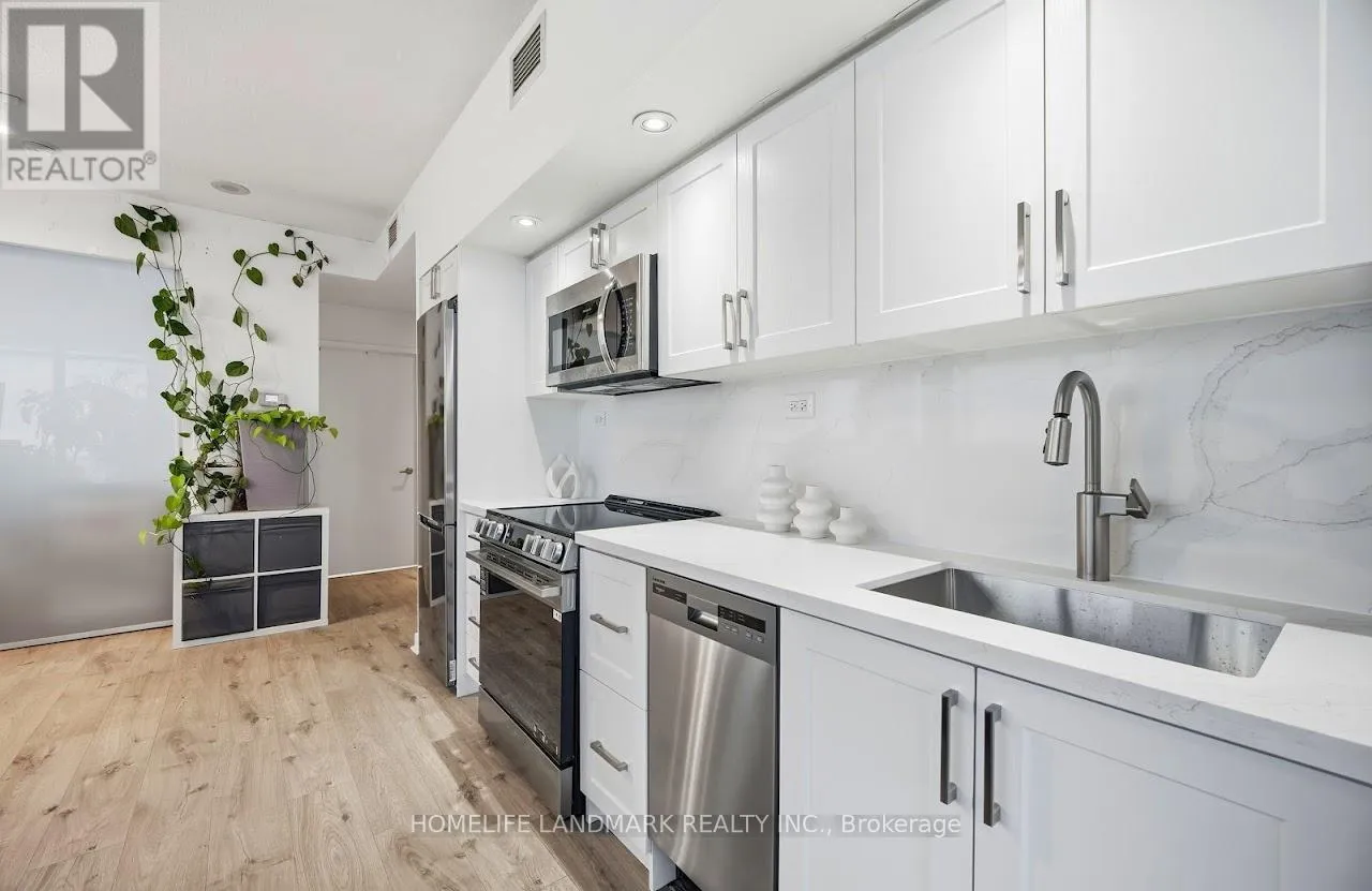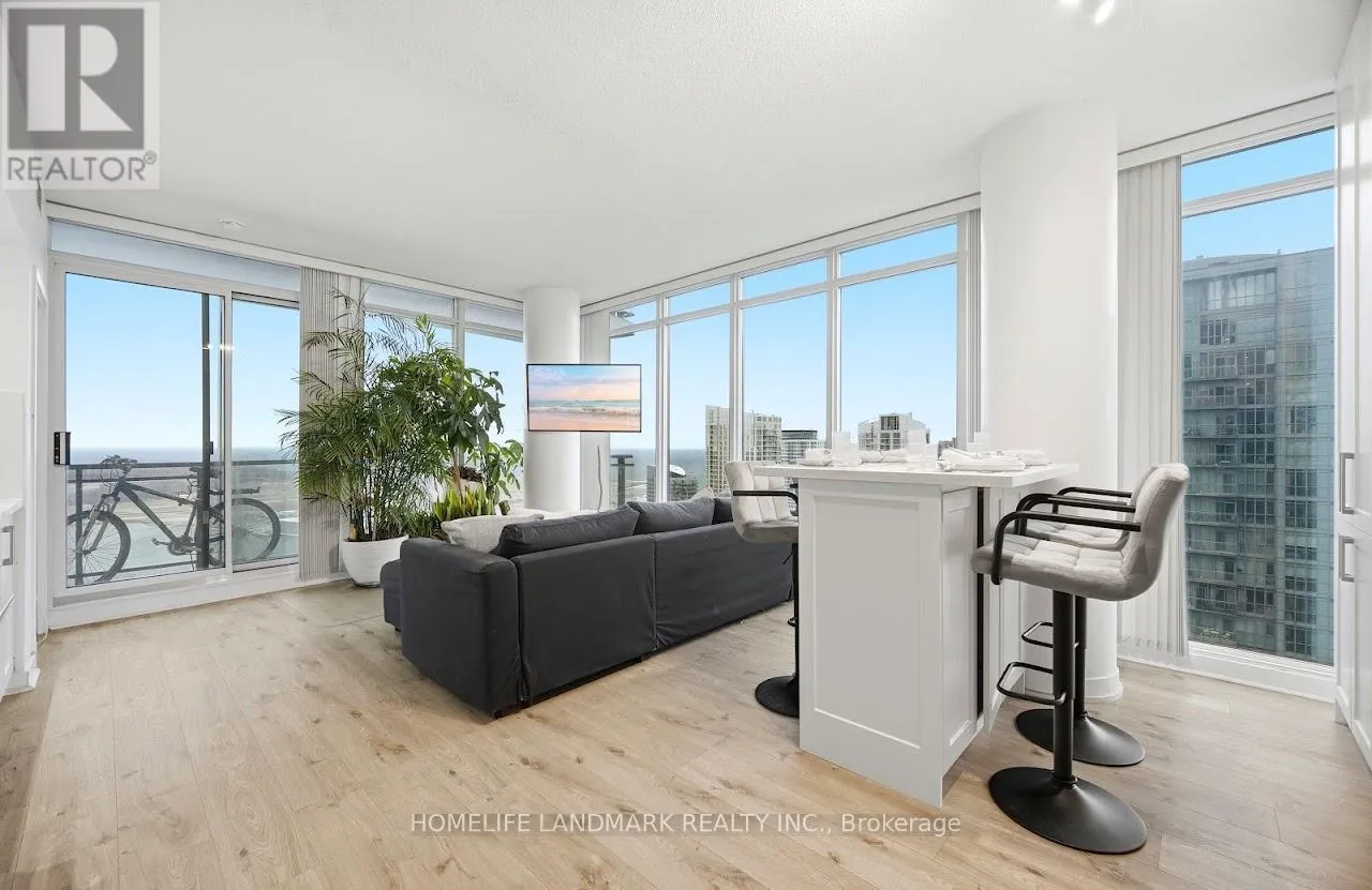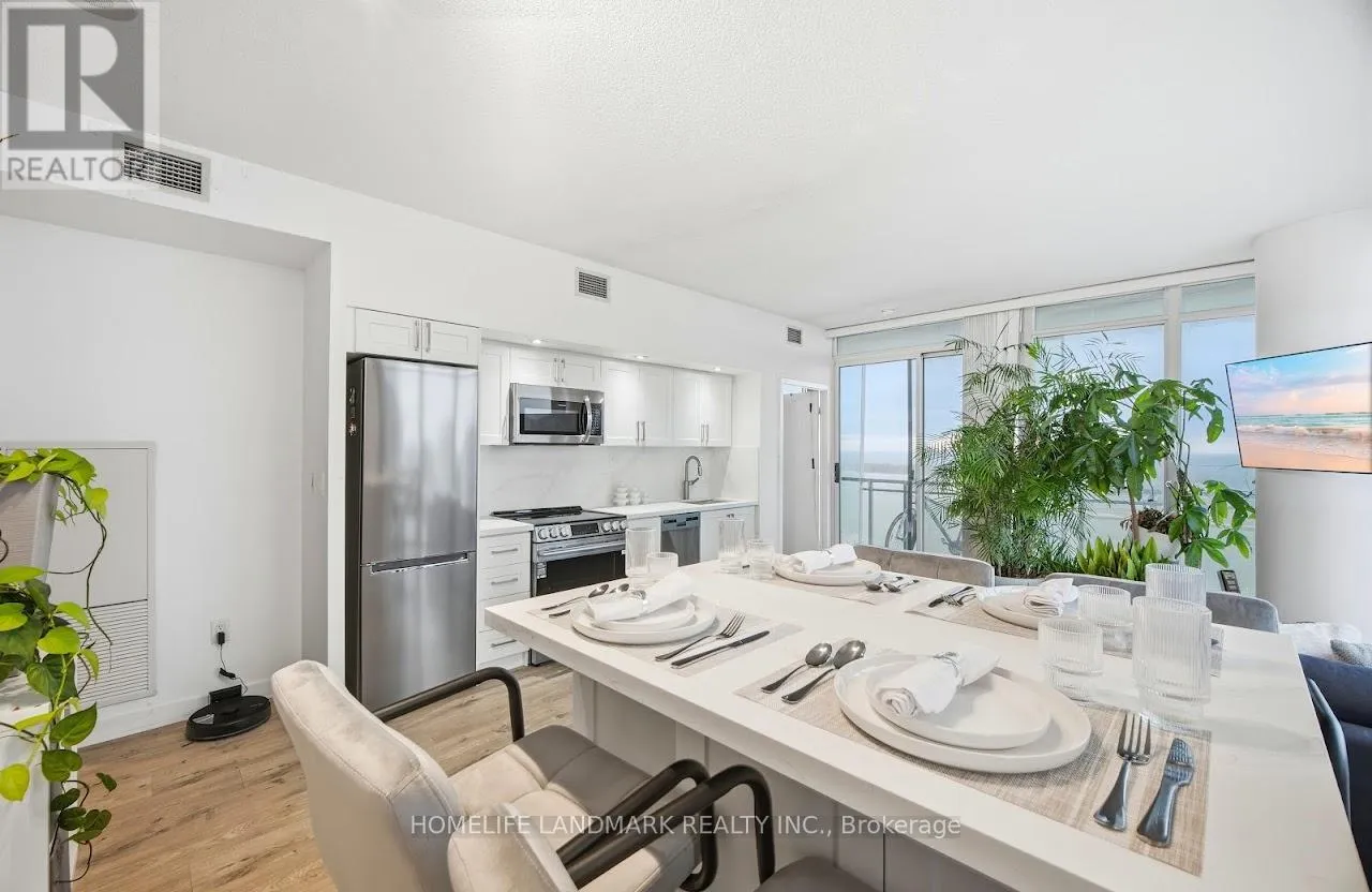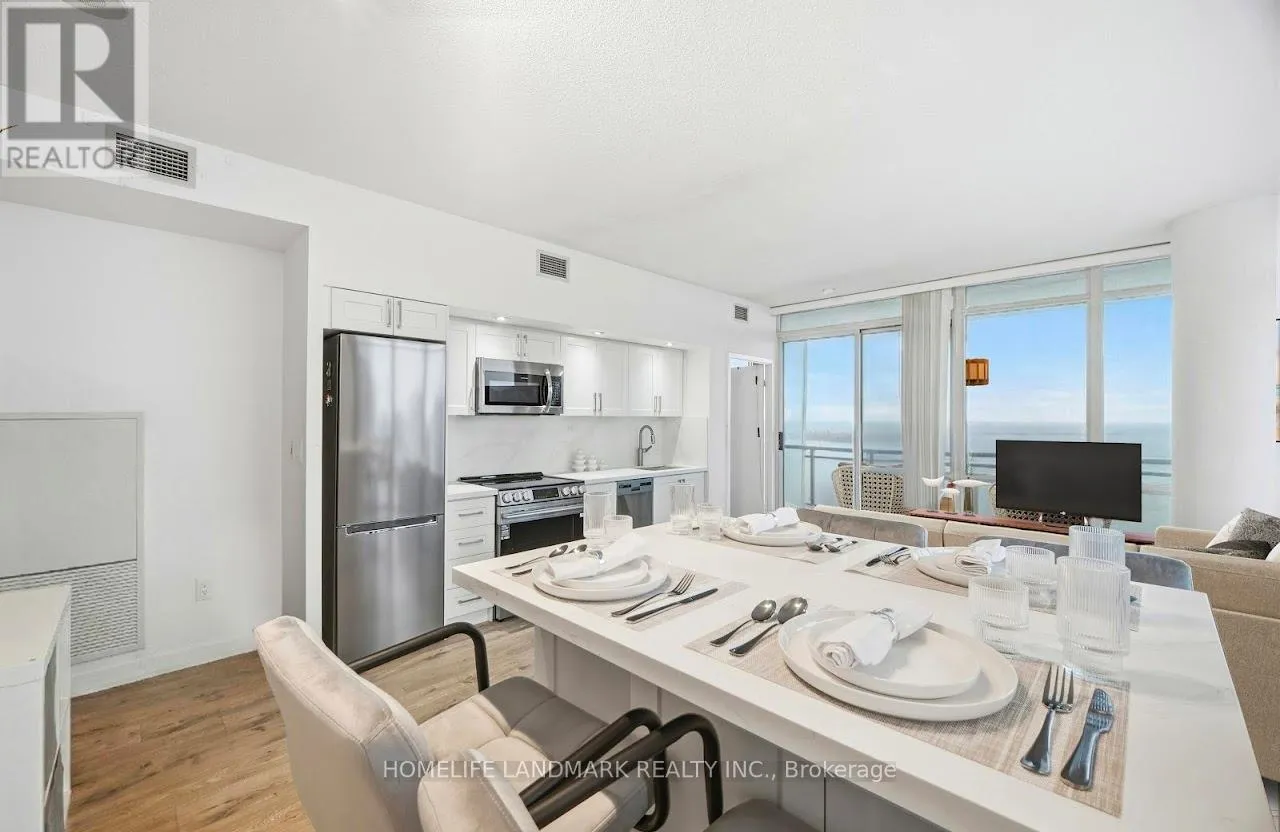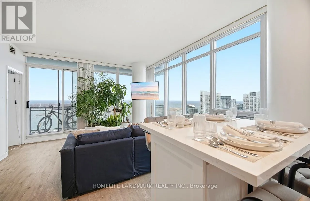 S. Appliances, A brand new Breakfast/Dining Island with Cabinetry, open to the living & dining spaces, ideal for entertaining or everyday living. Modern finishes include laminate flooring (new), Quartz counters, Quartz kitchen backsplash and pot lighting. The spacious primary bedroom has a 4-piece ensuite, closet and a stunning south lake view. The building offers a suite of fantastic amenities including a gorgeous rooftop pool & terrace with panoramic lake views and is located steps to the Harbour front, entertainment & financial districts, TTC, union station, CN Tower, grocery, dining & amenities. This home truly captures the essence of the downtown city lifestyle and stylish living. 1 owned parking, ensuite laundry, rooftop infinity pool/hot tub w/cabanas & striking lake view, 2BBQ terraces, fitness room + gym & sauna, party room, 24 hour concierge, visitor parkings, + guest suites. Recently modernized common areas. (id:27476)