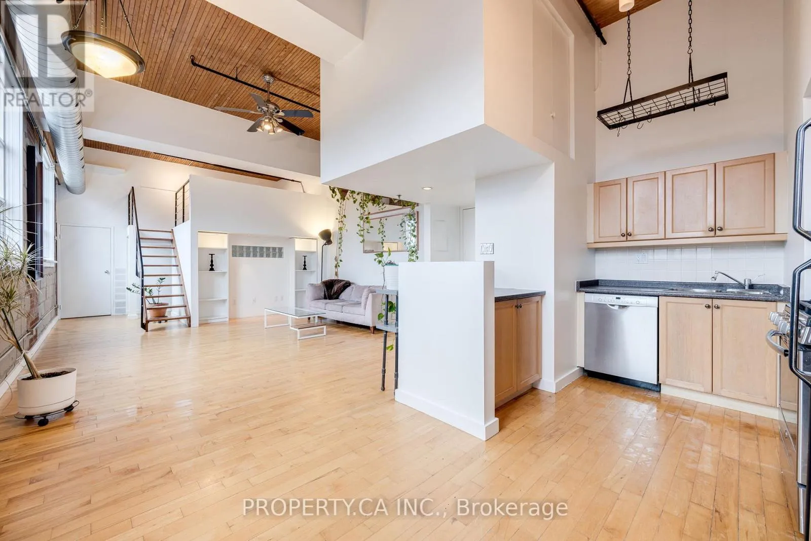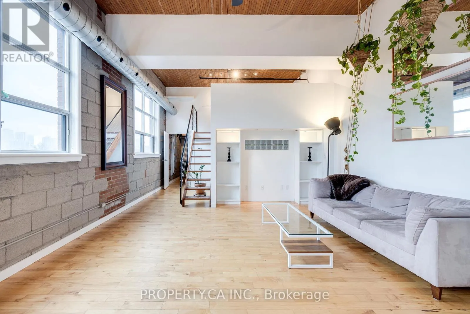 Queen & Sackville A true piece of Toronto history, the Knitting Mill Lofts stand as one of the city's most distinctive and authentic hard loft conversions. This multi-level penthouse captures everything people love about loft living: soaring 13-foot wood ceilings, exposed brick walls, a floating staircase, oversized warehouse windows, and unique details that tell the story of the building's industrial past.