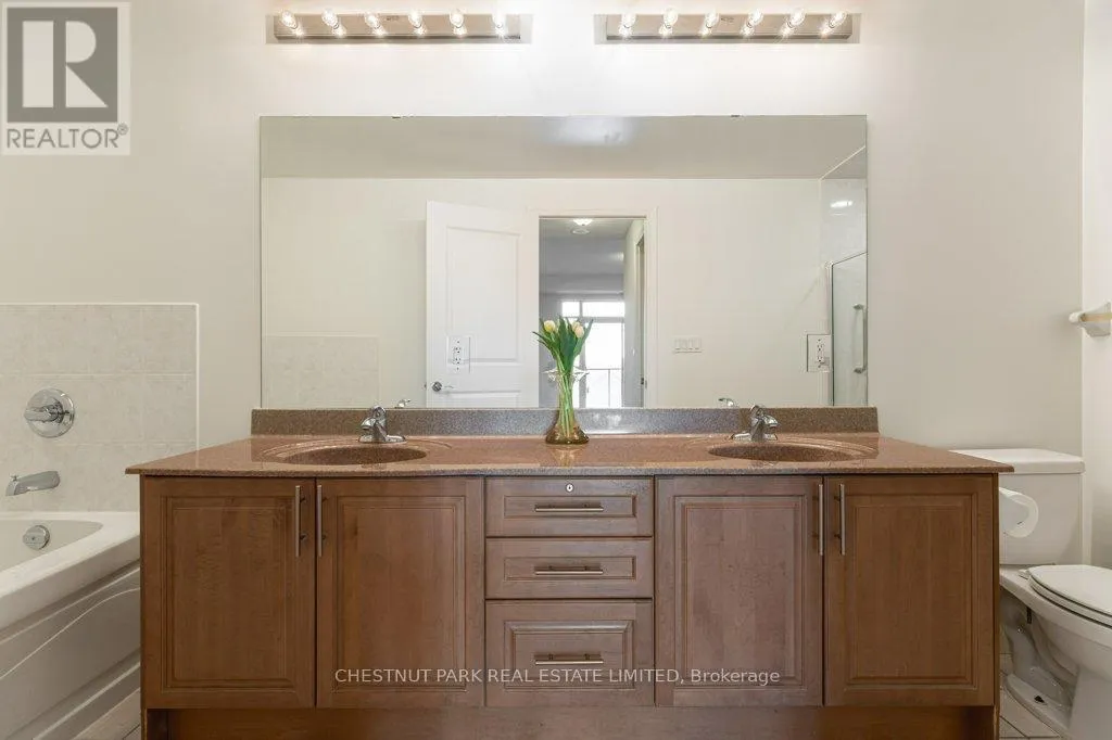 Cross Streets: Eglinton/Don Mills. ** Directions: Outdoor & Indoor visitor parking. RARELY available-one of the largest floor plans in the building! 1370 S.F. plus two SW facing balconies. Two spacious bedrooms that walk out to the two balconies, two walk-in closets in primary and two side by side parking spaces with adjacent locker. Bright, open concept suite with high ceilings with spectacular city, garden and forest views.