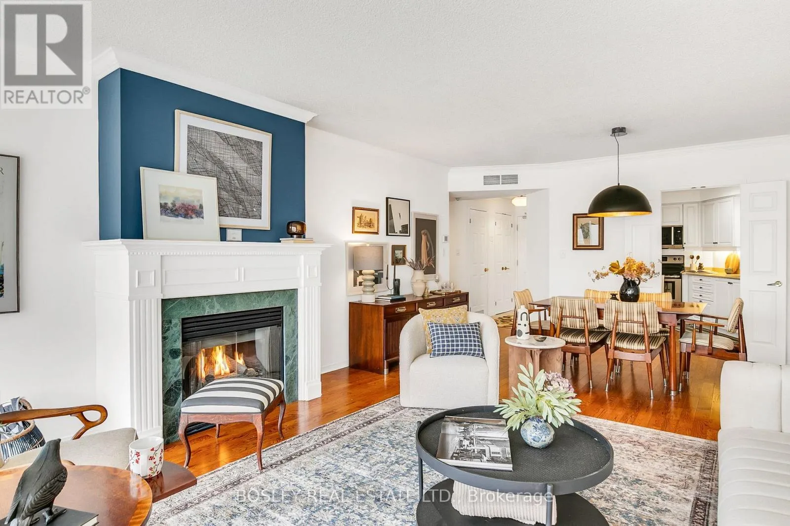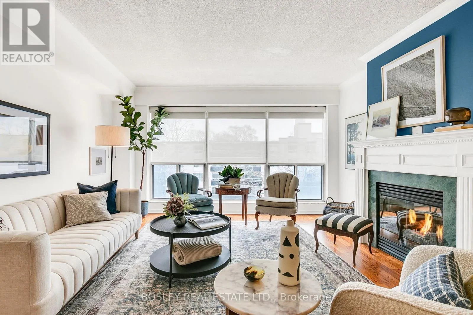 Step inside Suite 405 and you will immediately feel at home. Expansive yet cozy principle rooms feature gleaming hardwood, East facing sun-filled views, crown moulding, gas fireplace with hearth, comfortable storage options and freshly painted decor. Both generous sized bedrooms offer the ability for King size beds and have either a double closet or his and her mirrored closets with 4 piece ensuites. Lots of space for all the washing in the separate laundry room. Delight in the renovated eat in kitchen highliting Stainless appliances, quart counters with undermount sink and lighting with french doors to the dining room. Amenities include: garden terrace, party room, sauna, bike storage, easy visitor parking, gym, security system, car wash and on site superintendent. This suite also boasts its own heat pump ideal for flex temps, premium parking and locker spots and custom blinds. Excellent status available. Whether you are downsizing or looking for a sophisticated low rise enjoyment lifestyle in this popular Bayview and Eglinton location..this is definitley the one for you! This condo blends luxury living with low maintenance convenience in one of the best communities around. Incredible price per square foot offering!! (id:27476)