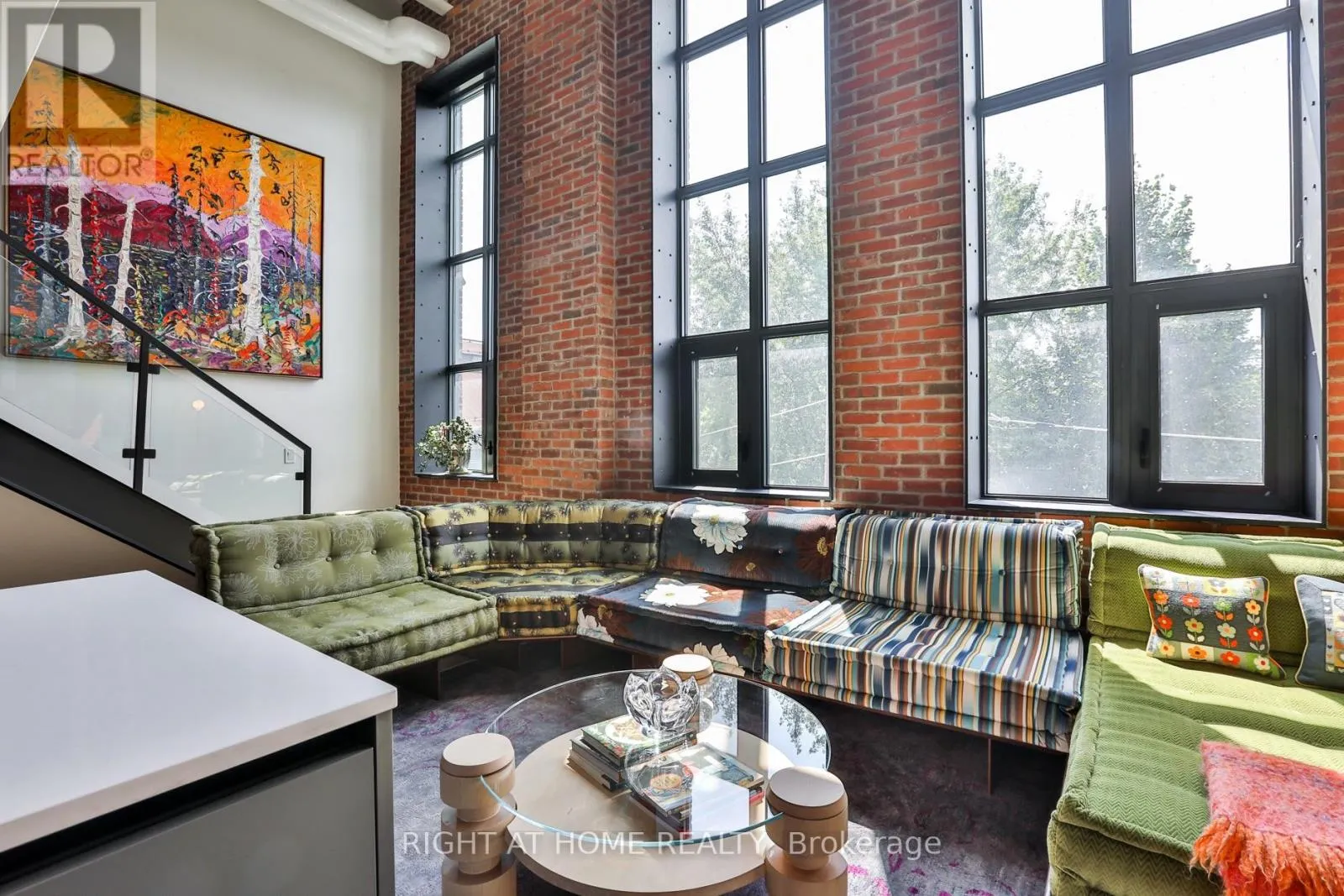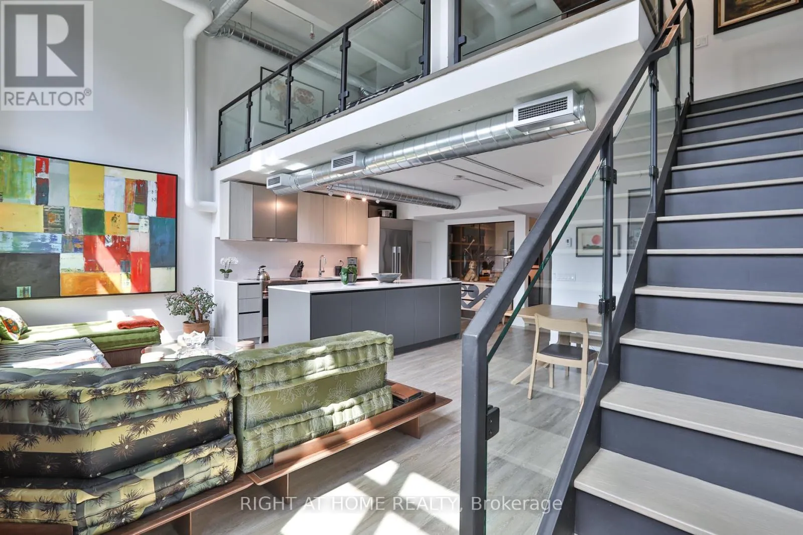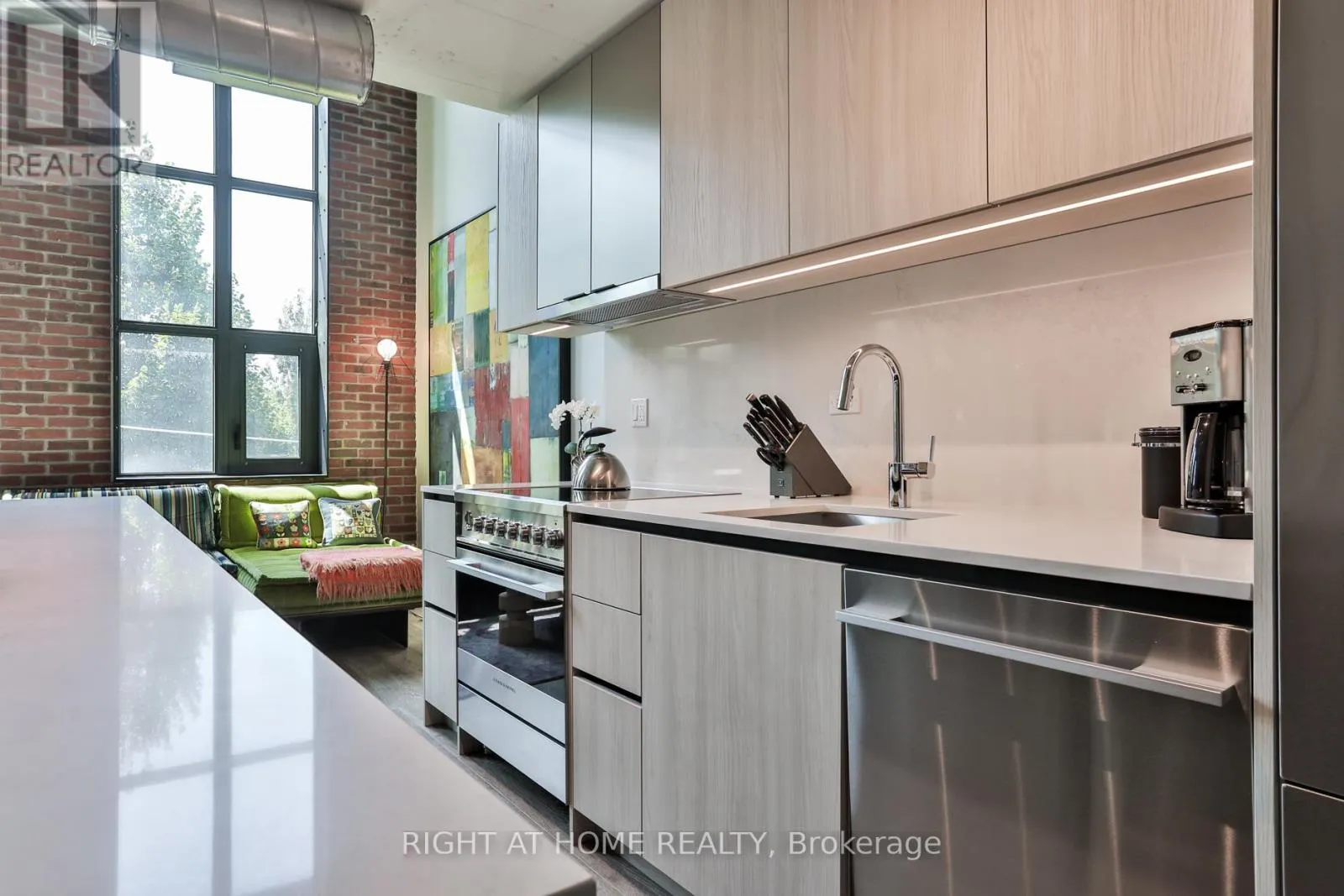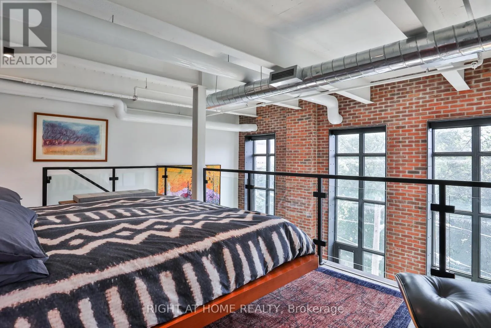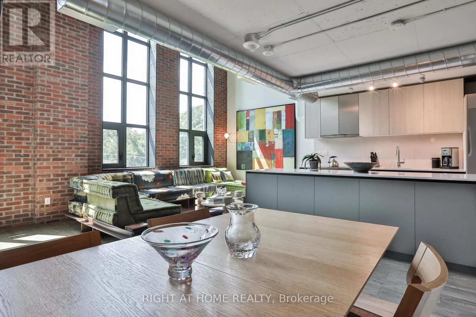 Eastern and Logan Something truly special at Wonder Condos - a sun-filled heritage loft with ideal west exposure, dramatic 17-foot ceilings, and original character throughout. Nearly 1,500 square feet of exceptional living space framed by soaring windows with integrated blinds, warm red brick accents, and a flexible floorplan accommodating up to three bedrooms. The upper loft is devoted to a serene primary suite with a generous walk-in closet and spa-like ensuite with dual vanities.