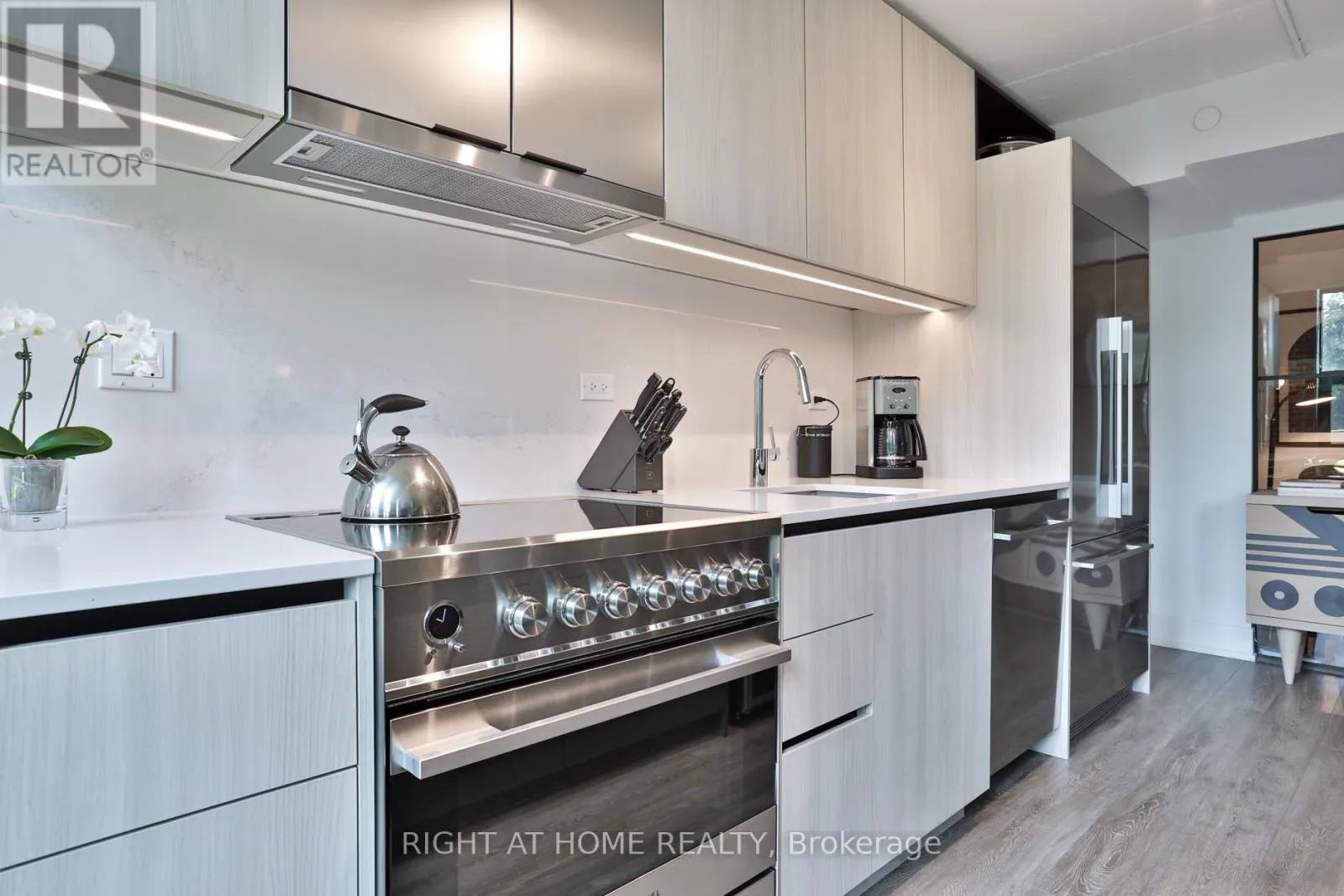A sprawling chefs kitchen anchors the main level, featuring an oversized island, abundant storage, premium appliances and induction range. Currently, the main floor includes a large office with custom built-ins and walk-in closet (easily reverted to a bedroom) plus a comfortable den, once a third bedroom. A full bathroom serves this level. Life at Wonder Condos offers a dynamic blend of history and modern convenience, with vibrant amenities including a rooftop terrace with BBQs and fire pits, co-working space, dog-wash station, well-equipped gym, and kids party room. Steps to the shops and dining of Queen East, and moments to Ashbridges Bay, Lake Ontario, and easy downtown/DVP access. An evolving neighbourhood within easy walking and cycling distance to the new Port Lands, Biidaasige Park, and the upcoming Ontario Line just blocks away. Exceptional space in a remarkable community. (id:27476)