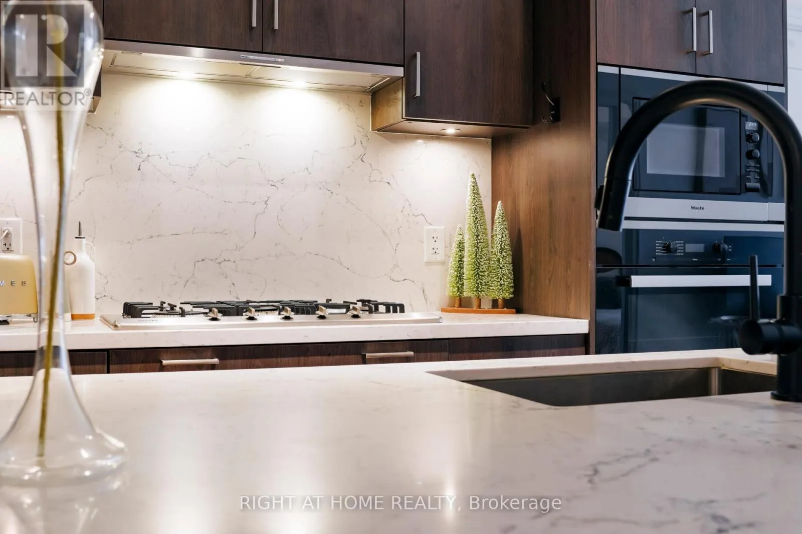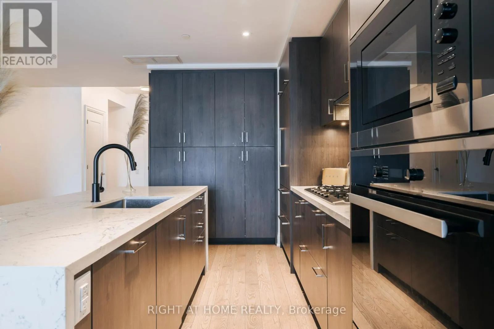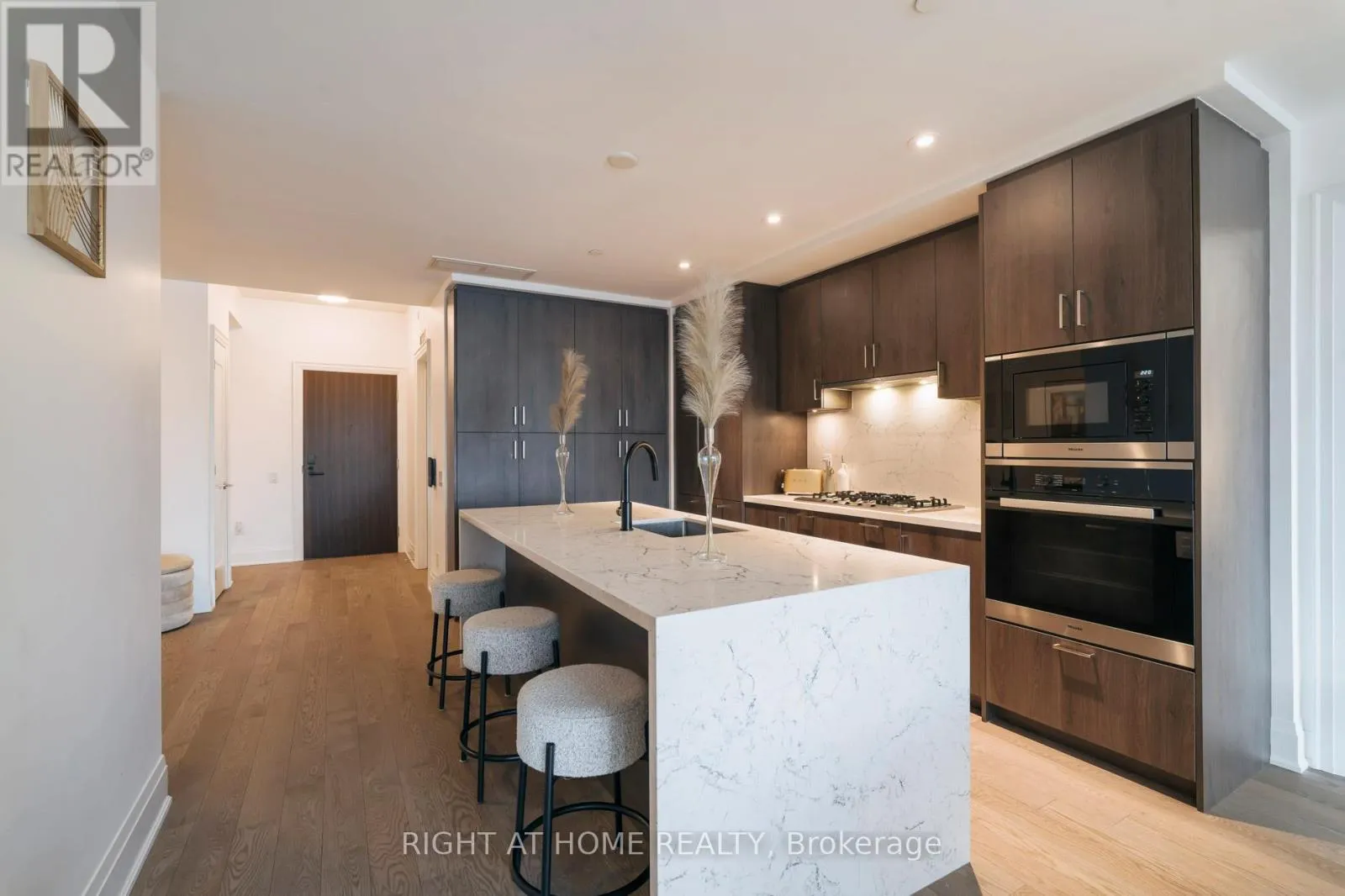 Miele 36" integrated refrigerator with matching panel door, Miele30" built-in stainless steel convection wall oven, Miele 36" built-in gas cooktop, Miele 24" integrated dishwasher, Miele built-in, stainless steel microwave, Wiring done for motorized window blinds. Includes one parking at P1 Level and one locker. (id:27476)