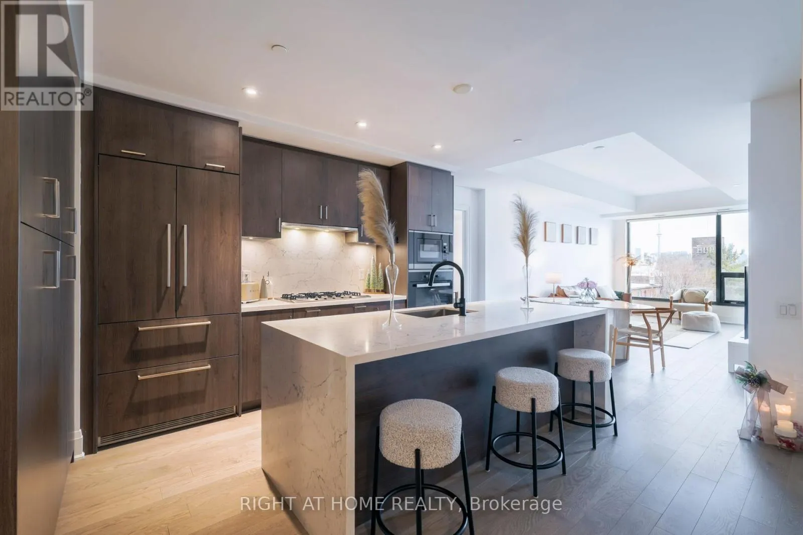 Cross Streets: DUPONT ST/HOWLAND AVE. ** Directions: DUPONTST/BATHURST ST. Welcome to Tridel's Bianca residences Suite 410 as part of premium Annex Collection, this bright spacious over 1300 sq ft south facing suite boosts unobstructed view of CN tower, Designer kitchen cabinetry with contemporary full height flat panel doors complete with integrated Miele appliances. Quartz kitchen countertop and matching backsplash with polished double square edge and deep undermount sink, Distinctive multitask island with waterfall edge countertop.