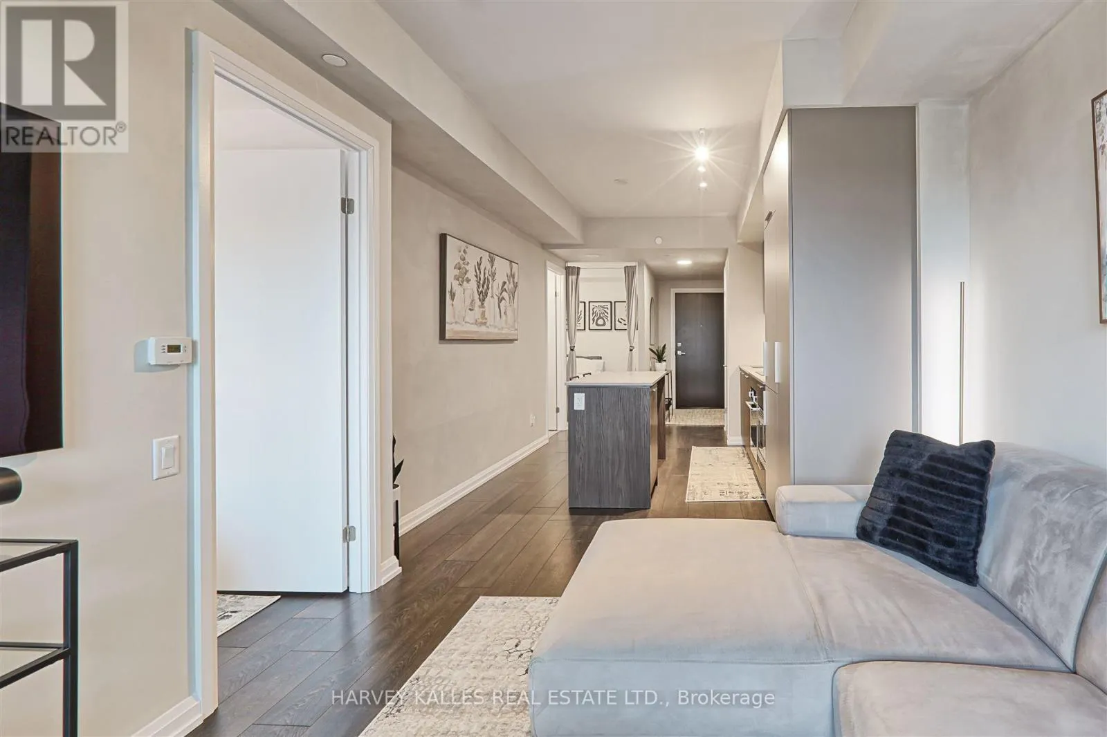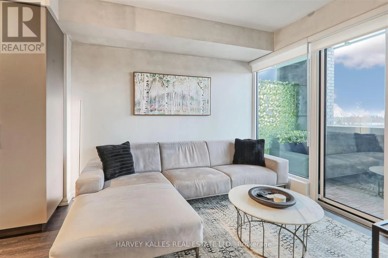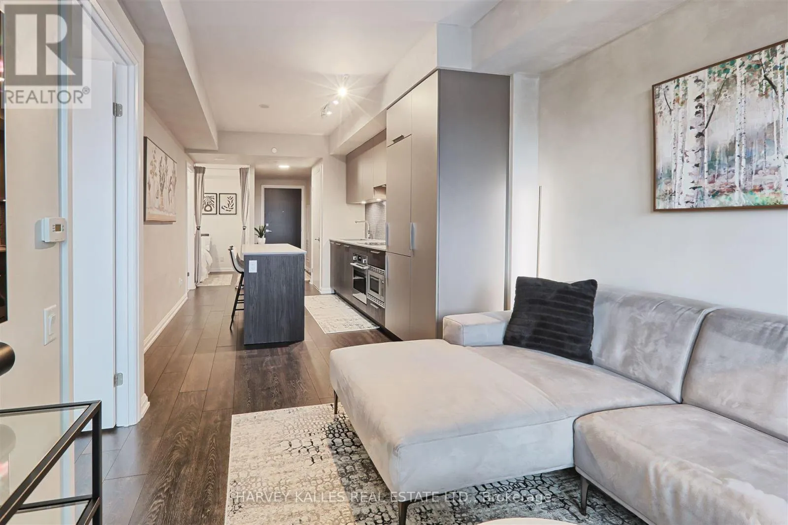 The unit boasts numerous upgrades, including a custom-designed kitchen island with seating and storage, integrated dishwasher and refrigerator, built-in wall oven, cooktop, and ample pantry storage perfect for cooking and entertaining. High ceilings and floor-to-ceiling windows create a bright and airy atmosphere, while the large private terrace has unobstructed south-facing views . The primary bedroom is generously sized, complete with a walk-in double closet for optimal organization. Upgraded bathroom fixtures and finishes ensure comfort, and wide plank flooring flows throughout the living areas and bedrooms.One parking and locker included. This boutique condo loft is ideally situated near highly-rated schools, surrounded by green spaces and the river valley. Residents can enjoy world-class amenities, including a service kitchen for hosting private events, a lounge with multiple sitting areas, fire pits, BBQ stations, and dining tables for summer gatherings. A fully equipped fitness center, 24-hour security, and visitor parking complete this exceptional living experience. Dont miss the opportunity to make this luxurious condo your new home! (id:27476)