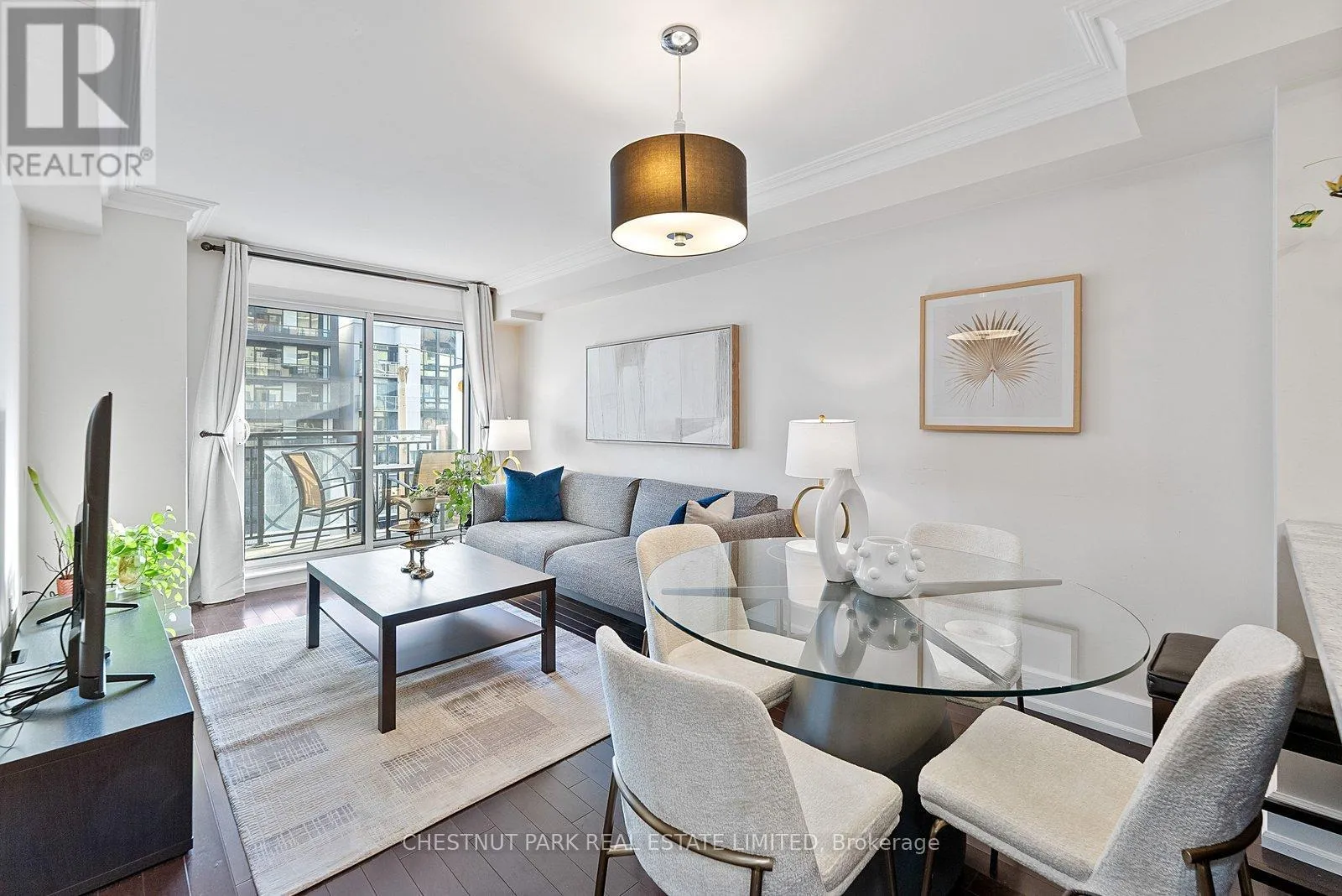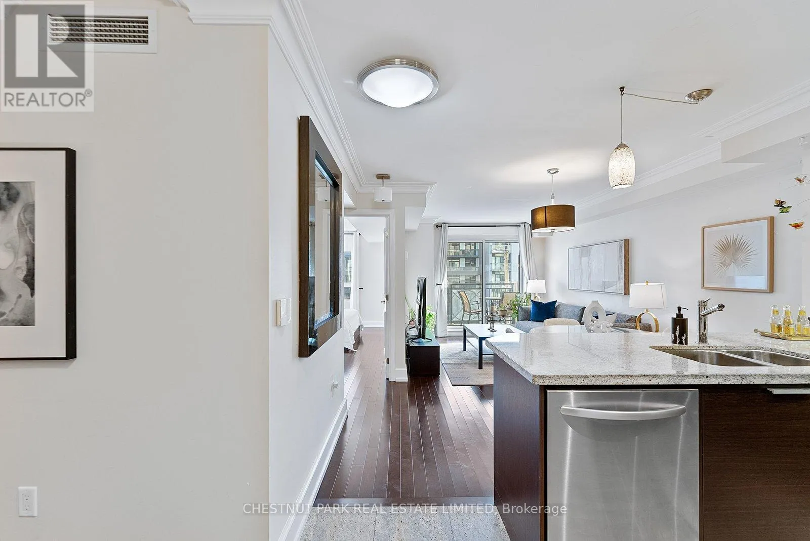 Cross Streets: Bayview / Sheppard. ** Directions: East of Bayview Ave. on Sheppard Ave. E. This bright and inviting 1+Den condo offers approximately 572 sq. ft (plus 56 sq.ft of Balcony) of well-planned living space. South-facing, it's filled with sunlight all day, highlighting the large windows and a sunny balcony-perfect for your morning coffee or relaxing in the evening. The open-concept layout feels airy and functional, while the kitchen features granite countertops and stainless-steel appliances, ideal for cooking or entertaining.