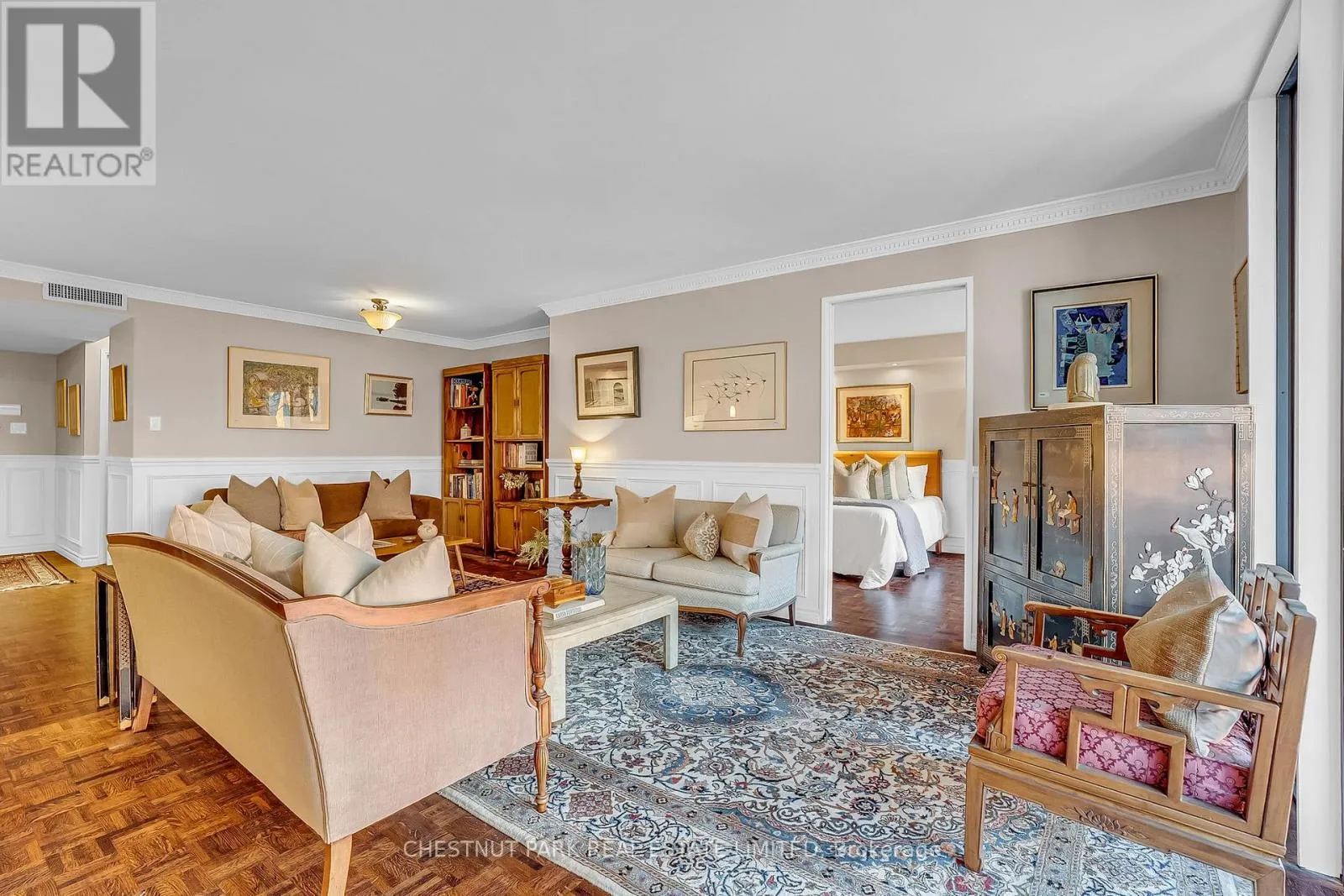 Parquet floors throughout in excellent condition, crown mouldings, loads of storage. The kitchen has been opened with a centre island/breakfast bar and a walk-in pantry. The primary bedroom is large with a walk-in closet and an ensuite bathroom with a separate bath and shower stall. Den currently set up as a dining room, leaving an extra-large living room, but it can be made into a separate room. Very friendly community building with long-term residents, loads of amenities including indoor swimming pool, squash courts, gym, library, rooftop deck, 24-hour concierge and more. So close to Market, restaurants, Union Station, and Billy Bishop airport. Parking and Locker included. (id:27476)