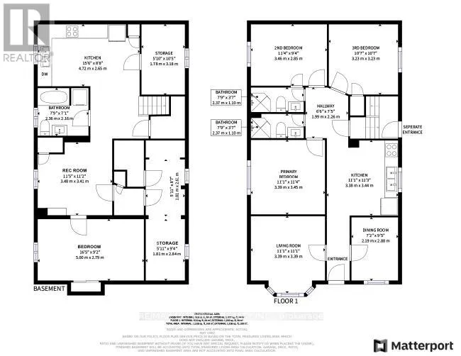 Step inside to find a bright, functional layout featuring 3 bedrooms all on one level. The dining area can easily double as a recreation room or guest suite. Enjoy hardwood and tile flooring throughout, windows in every room, and plenty of natural light - even in the basement! The open-concept kitchen and living area is ideal for entertaining, complemented by two 3-piece bathrooms on the main floor - no more waiting for your turn! A separate basement entrance adds flexibility for an income suite, nanny quarters, or in-law space with its own 4-piece bathroom. Outside, you'll find 2 front yard parking spaces (no more circling the block), a side storage shed for bikes and gardening tools and 1 garage parking (with laneway suite potential) at the back along with a fully fenced in front and backyards offering privacy and peace of mind. The interlocked backyard completes this downtown haven. All of this, just minutes from Queen Street, Dundas West streetcar, shops, restaurants, and Ryerson Public School - urban living at its most convenient. Make this your family's home for the next 24 years - a true downtown gem with endless possibilities. (id:27476)