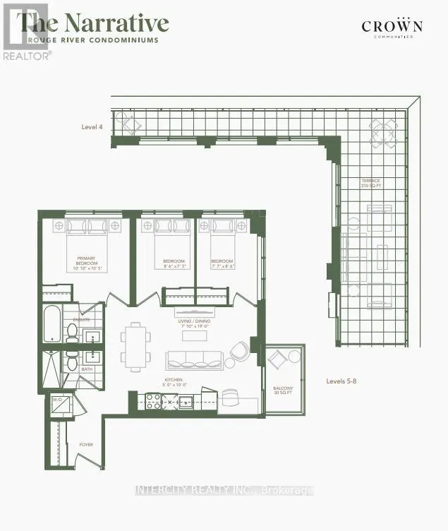 Port Union & Hwy 401 Welcome to The Narrative Condos, located in the highly sought-after Rouge community of Toronto Presenting the stunning G11 model: a brand new 788 sq. ft. 3-bedroom, 2-bathroom condo complete with parking and a storage locker, right in the heart of Rouge! Your quest for the ideal combination of city convenience and natural beauty ends here. This modern luxury suite offers an upscale living experience, surrounded by serene ravines, lush parks, scenic nature trails, and the beautiful shores of Lake Ontario all while being just minutes away from Highways 401 and 407, TTC and GO Transit, as well as vibrant shopping areas, banks, healthcare facilities, and everyday necessities.