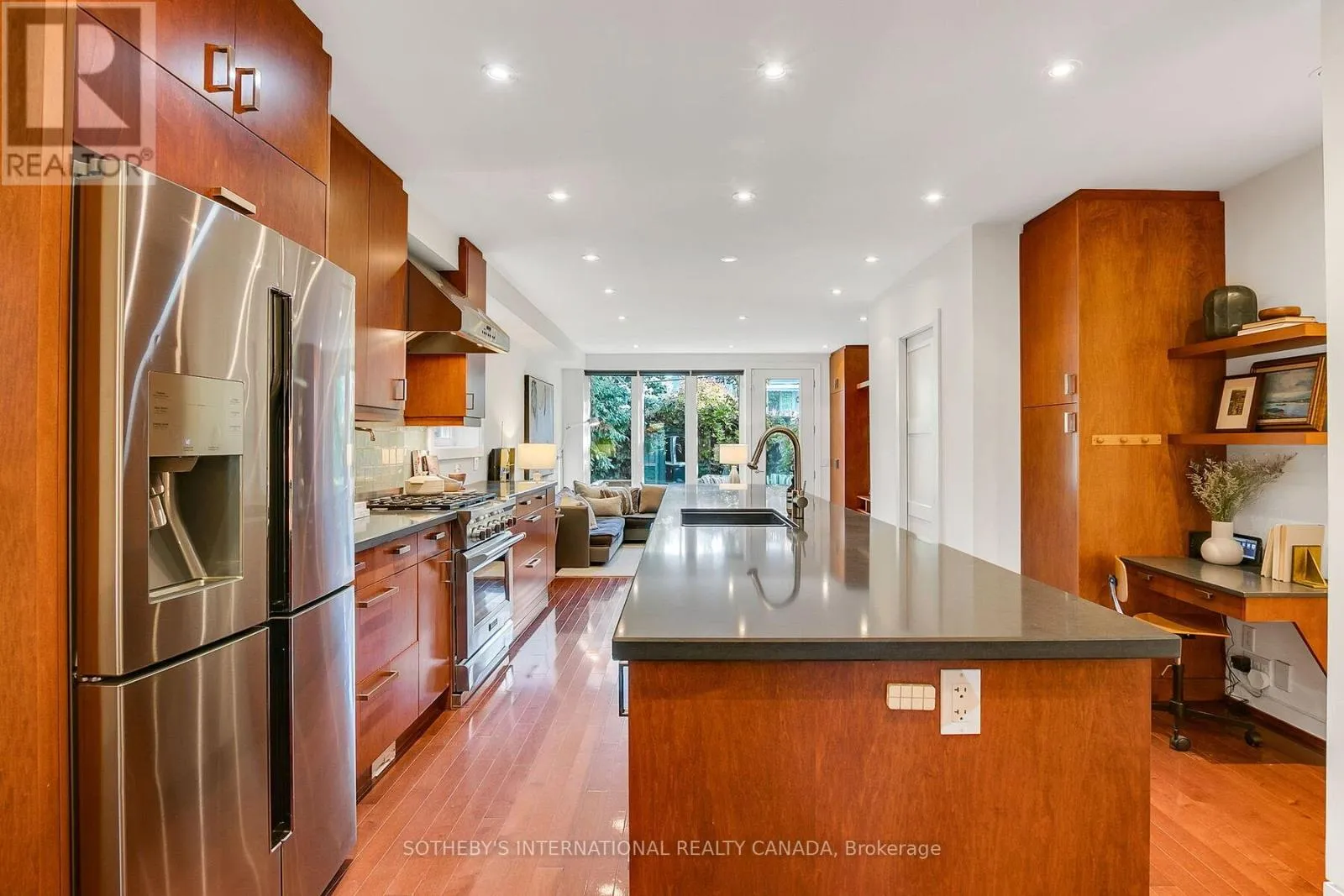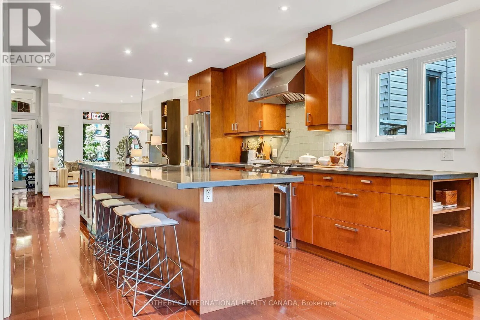 Sleek open concept eat-in kitchen has high-end appliances, 6-burner gas range and massive centre island equally suited for gathering large groups for celebratory soirées or breakfast with the kids. Main floor family room has wall-to-wall windows, custom millwork built-in closet, integrated wall-mounted TV + sound bar, open shelving & w/o to brand new backyard deck & patio. The sprawling 2nd floor primary suite impresses with wall-to-wall picture window overlooking leafy lush backyard, custom built-in closets, credenza & true-spa 5-pc ensuite with separate shower, large soaker tub, heated floors & contemporary floating vanity. 2nd bedroom has 4-pc ensuite and vaulted 2-storey ceiling w/soaring windows that let the sunshine in and super sweet window seat for stolen moments of quiet retreat, reading or just watching the world go by. Entire 3rd floor retreat makes an ideal home office, 3rd bed, or guest suite with w/o to large rooftop sundeck way up in the treetops. Finished basement makes great kids play space w/loads of built-in storage, closets & utility room. Fully fenced, private backyard has brand new deck, patio and charming ivy-clad rare double car garage with 2-car parking, work bench and loads of storage. Located just steps to Parliament St shops, restaurants, cafés & TTC, this totally turn-key property offers a rare opportunity to enjoy historic Toronto charm paired with luxurious modern design you'll be thrilled to call home. See attached Feature Sheet for list of improvements. OPEN HOUSE Sat 2-4PM (id:27476)