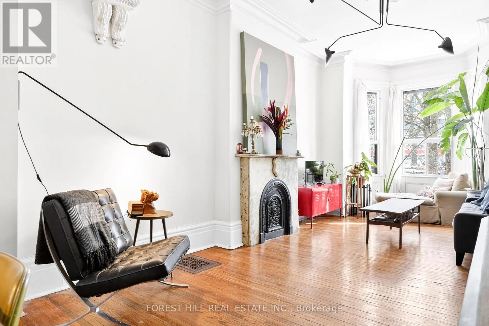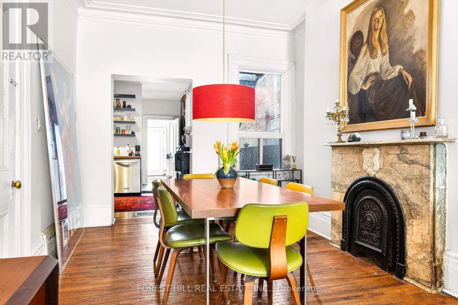 Queen St West and Beverly. Rarely offered, this heritage listed row house in the Grange Park neighbourhood at 46 Phoebe Street was built in 1882, rich in original character..The main level showcases grand living and dining rooms anchored by two original marble fireplace mantels, exceptionally high ceilings, and rich hardwood floors. A gourmet contemporary kitchen opens to a private garden courtyard with heritage brick and direct lane way parking along with a spacious bedroom or study that completes the main level.