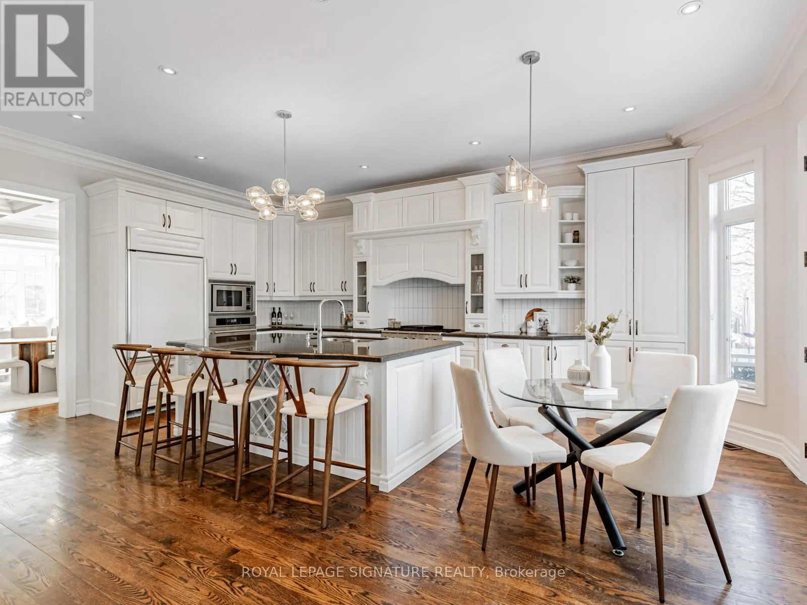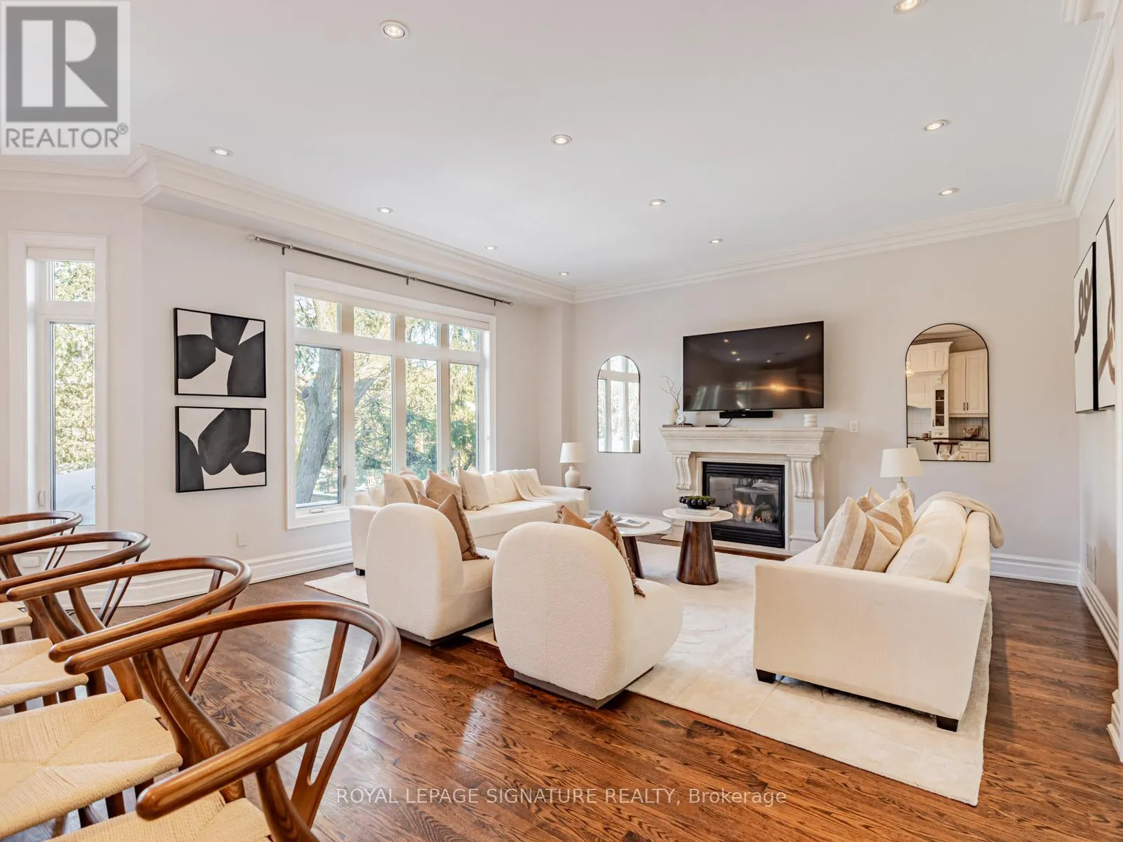 ft. of interior space unfolds with intention. Sunlight flows through expansive principal rooms, highlighting elegant millwork, tailored finishes, and thoughtfully considered sightlines. The layout is both grand and intimate, offering generous entertaining spaces alongside private retreats. Two gas fireplaces on the main level provide warmth and ambiance, enhancing the inviting atmosphere. The heart of the home is a chef's kitchen with premium Travertine marble countertops and a statement island, ideal for family gatherings. Adjacent, the formal dining room features wainscoting, coffered ceiling, and elegant moulding, making every meal memorable. A dedicated home office provides a quiet workspace, while the finished lower level includes a recreation and games room with walk-out access to a private backyard oasis and sparkling pool. Private quarters offer a calm escape, with five spacious bedrooms, five spa-inspired bathrooms - including a primary ensuite with heated floors - all designed for comfort and livability. Set within a coveted enclave near top schools, parks, shops, and transit, the home also includes a two-car garage plus parking for six vehicles. 472 Deloraine Avenue is not just a home - it is a statement of refined family living, where timeless design and modern comforts converge effortlessly. (id:27476)