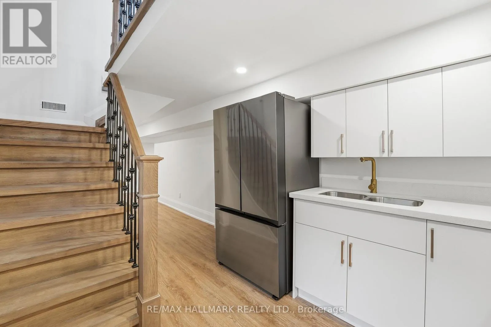 The main level features 9-foot ceilings and an impressive double-height foyer, creating strong visual impact and excellent natural light. An open-concept layout connects the living, dining, and kitchen areas, ideal for both everyday living and entertaining. The living room is anchored by a modern gas fireplace feature wall that adds warmth and architectural interest. The gourmet kitchen is fully equipped with a built-in refrigerator, 36-inch gas range, walk-in pantry, custom coffee bar, and a large central island suitable for casual dining or hosting guests. The second floor offers four generously sized bedrooms and three full bathrooms, including a tranquil primary suite with a spa-inspired five-piece ensuite. A dedicated second-floor laundry room enhances daily convenience. The fully finished basement, accessed through a separate private entrance, includes a complete kitchen, bedroom, bathroom, and separate laundry facilities. This space is ideal for extended family living, in-law or nanny accommodation, or rental income. Additional features include a double-car garage with extra-height doors, an interlocking driveway with parking for up to four vehicles, and close proximity to schools, parks, public transit, and local amenities. A rare opportunity to own a modern, high-quality home with upscale finishes and flexible long-term use potential in Scarborough Village. (id:27476)