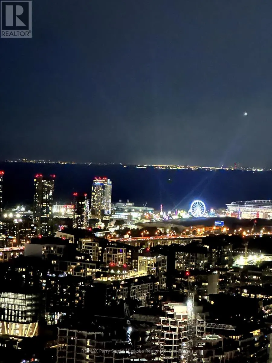 Cross Streets: Peter & Adelaide. ** Directions: Spadina to Adelaide to Peter. One of the best views in the city! 49th floor! A skyscraper view of the city. Your evenings and life will be lit up with colour. Close view of the CN Tower, Rogers Centre, Exhibition place, Lake and even as far as Dundas Square. Catch the air show and watch planes take off and land at Billy Bishop airport. Watch the sunset from the roof top pool.