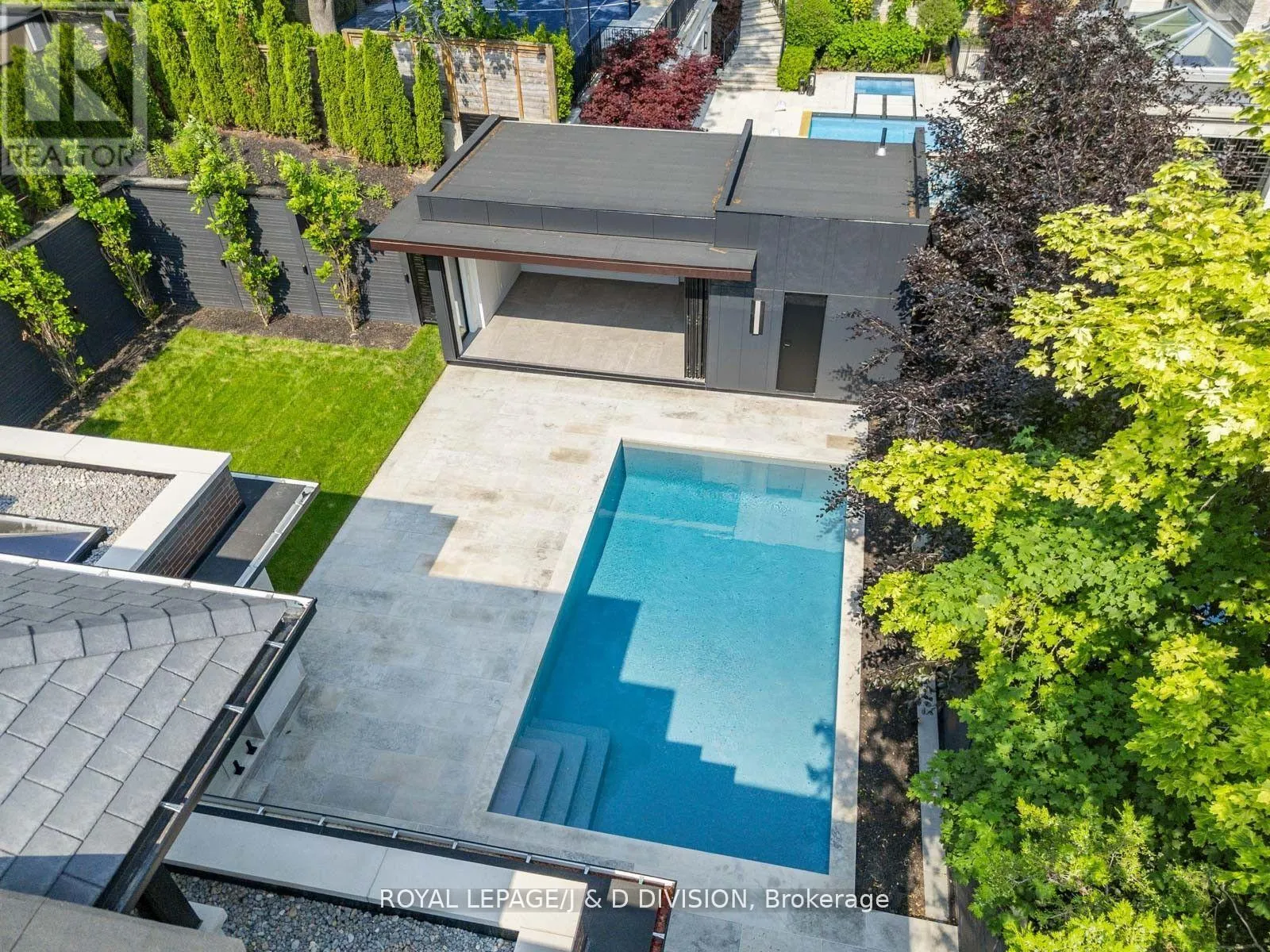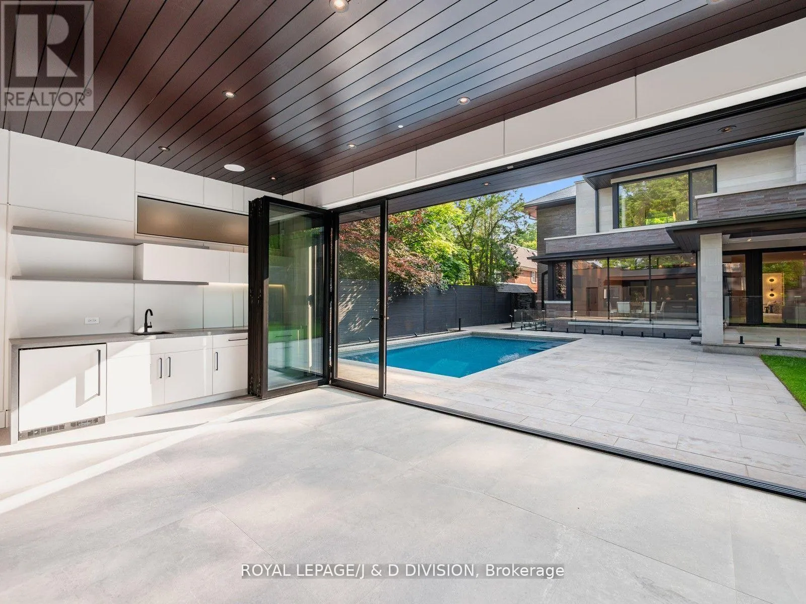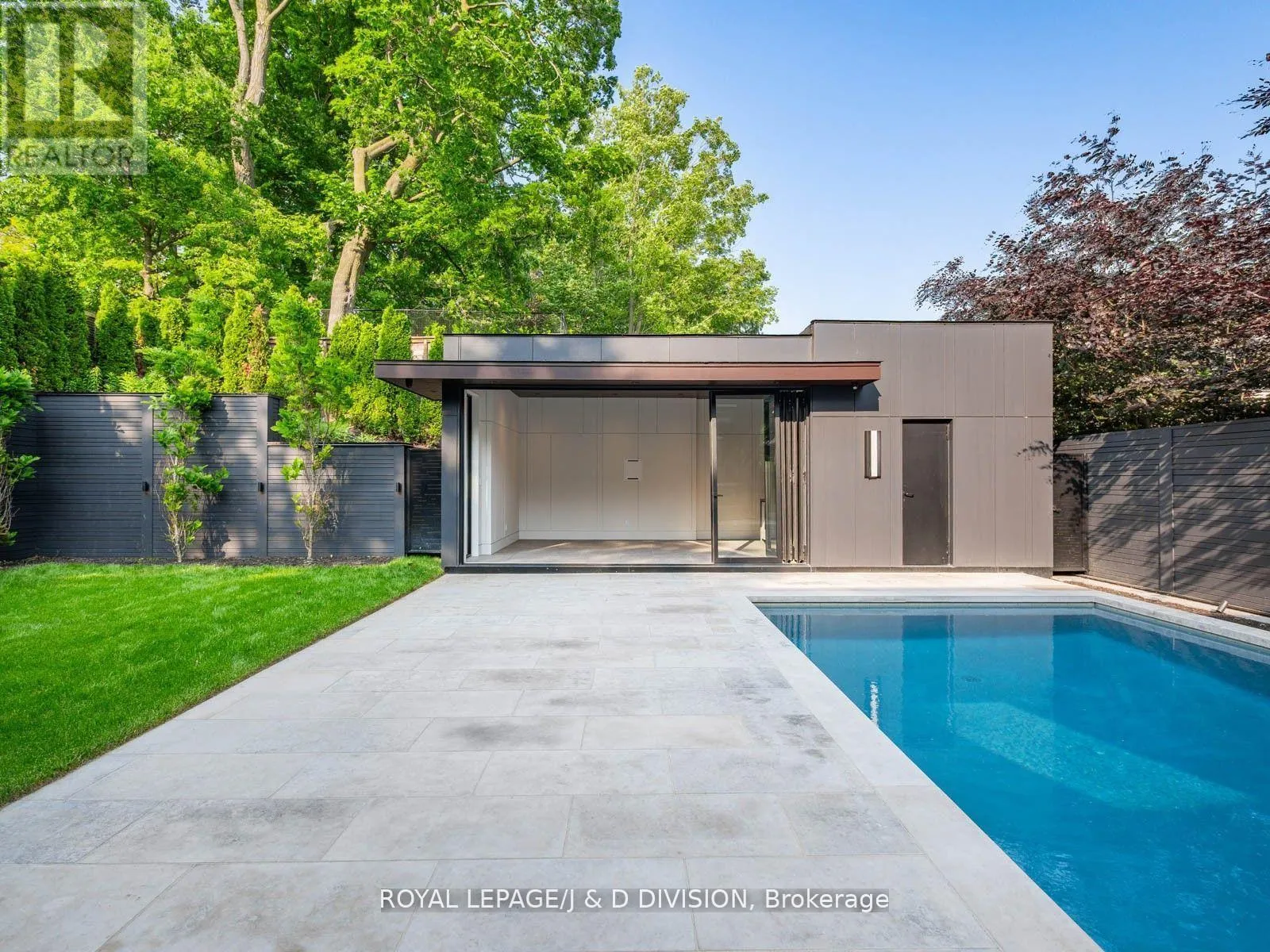 Expansive glass windows and doors, all overlooking the incredible backyard pool, cabana and entertainer patio. Perfectly positioned powder room off the mudroom which has side door entry and direct access to the double car garage. Primary suite with a treetop view of the pool, 5 piece ensuite bathroom and unreal dressing room fit with a custom closet system. 3 remaining bedrooms with ensuite bathrooms and walk-in closets. Second floor laundry room for ease and convenience. 10 ft ceilings on the main floor and second floor. Sensational basement (9 foot ceilings) with supersized family room, the generous proportions allow for entertainment area and games room. There is a bonus home gym and an additional bedroom with 3-piece ensuite bathroom. This house boasts incredible natural light, custom paneling, oak hardwood floors and heated porcelain tile floors throughout. The backyard has been designed for entertaining in the city. The covered patio with gas fireplace is perfect for entertaining and the salt water pool and sundeck will keep the kids happy. The rear cabana offers bonus climate controlled space year round. Landscaped with column trees and sleek metal fencing for the ultimate in privacy. No expense spared in the construction of this contemporary masterpiece. (id:27476)