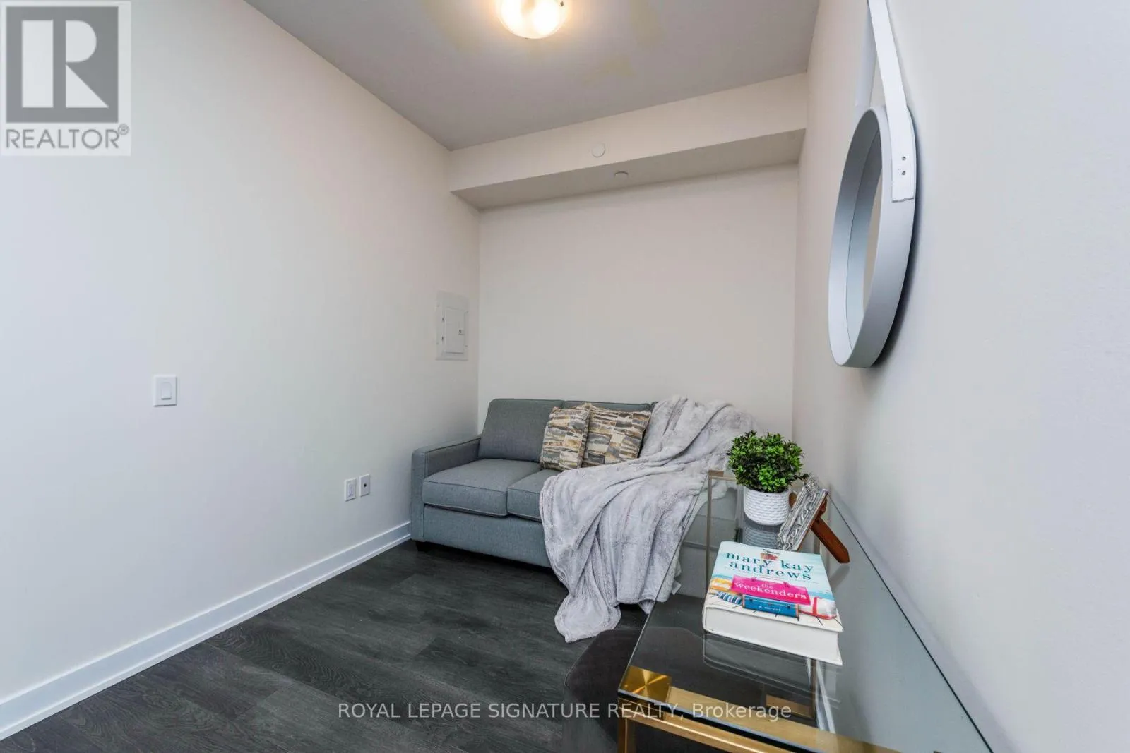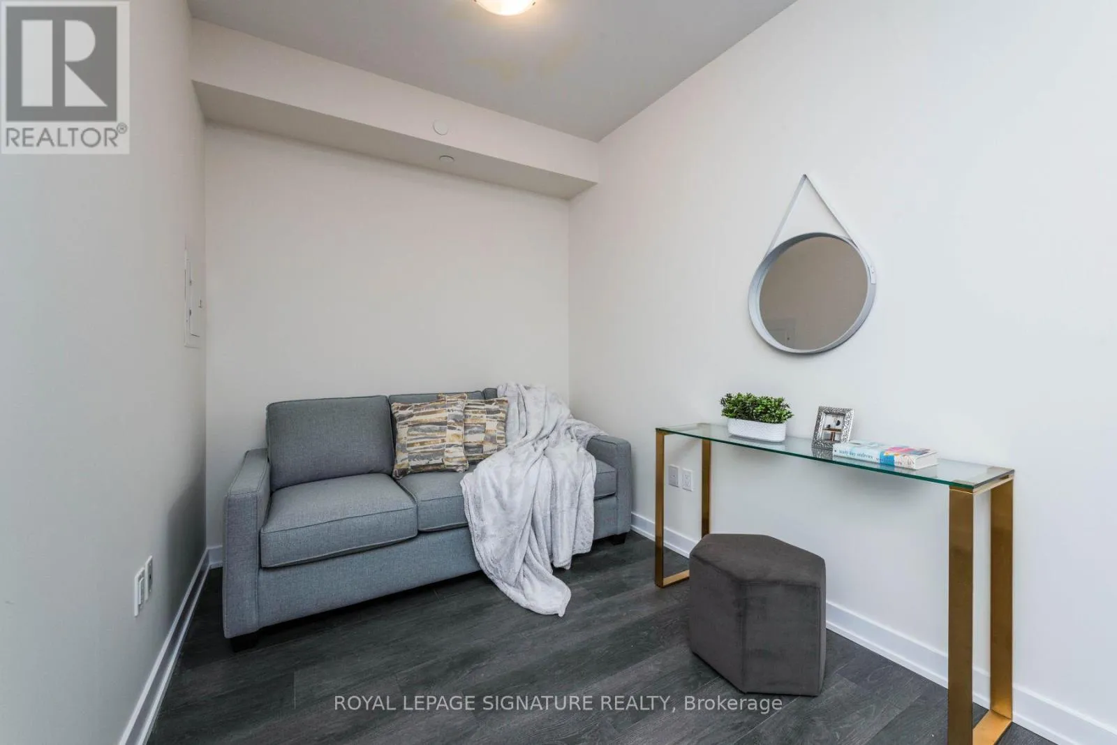 Den Is Fully Equipped With A Sofa Bed. Bring your bags and it is fully move in ready!!!This luxury building comes with top of the lines finishing, floor to ceiling window. Outdoor walking track, fitness circuit to spin studio and gym, outdoor kids play area, party room and more! **EXTRAS** Blinds, all furniture currently shown in pictures. Dinning table, sectional, glass consoles, bed, sofa bed, centre table, side table, decorations & pictures. (id:27476)