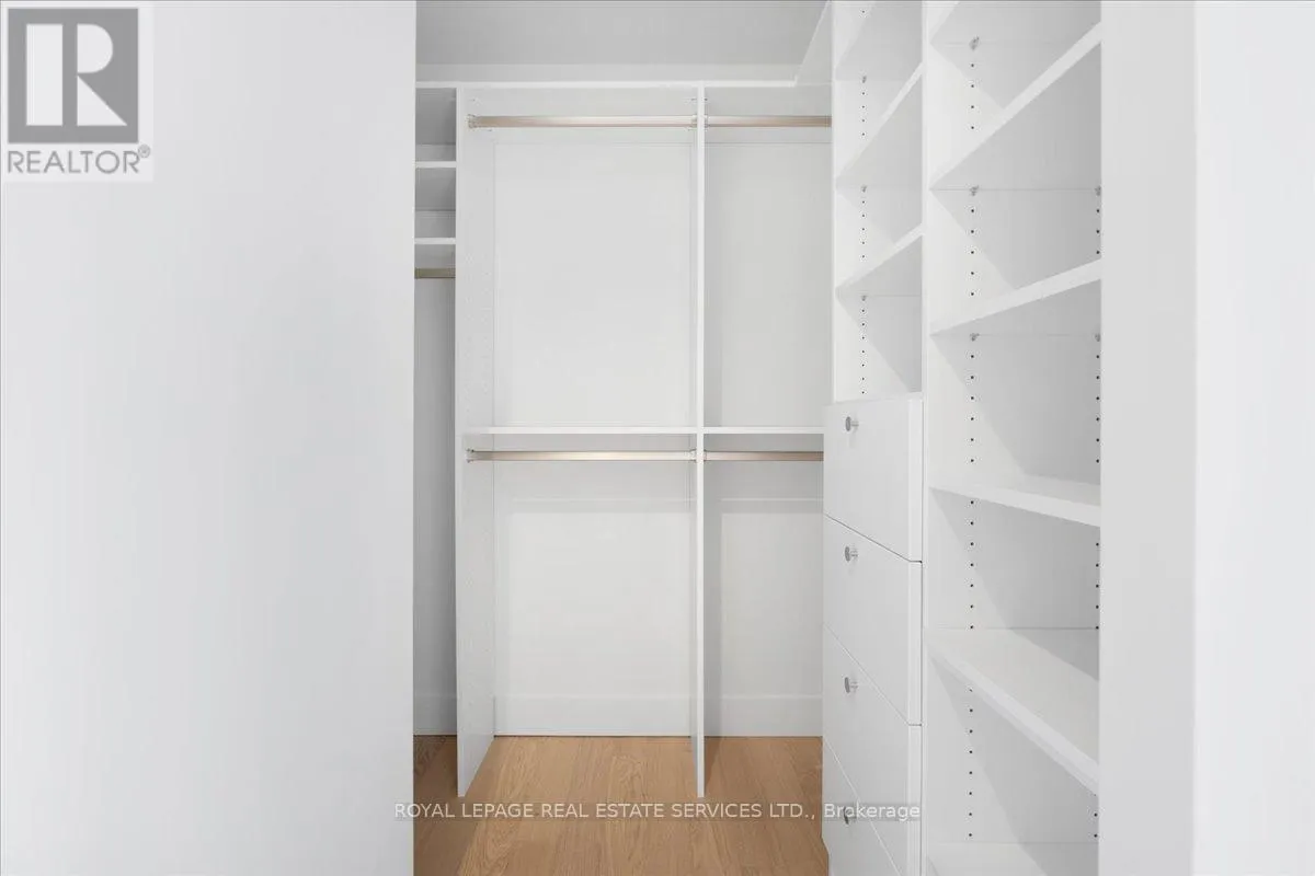 The open-concept living and dining areas are bathed in natural light through wall-to-wall, south west-facing windows, enhanced by soaring ceilings and rich hardwood floors throughout. Both bedrooms enjoy tranquil west-facing vistas. The primary suite impresses with a custom walk-in closet and a spa-inspired en-suite featuring a floating double vanity, recessed lighting and walk-in rainfall shower. The second bedroom offers generous closet space, while a sleek three-piece bath with floating vanity and walk-in shower sits conveniently off the entryway. A dedicated laundry room adds everyday functionality. This exceptional residence includes one parking space and a large storage locker.1414 Bayview Avenue is a boutique building with just 44 luxury suites, celebrated for its elegant design, intelligent layouts, and premium finishes. (id:27476)