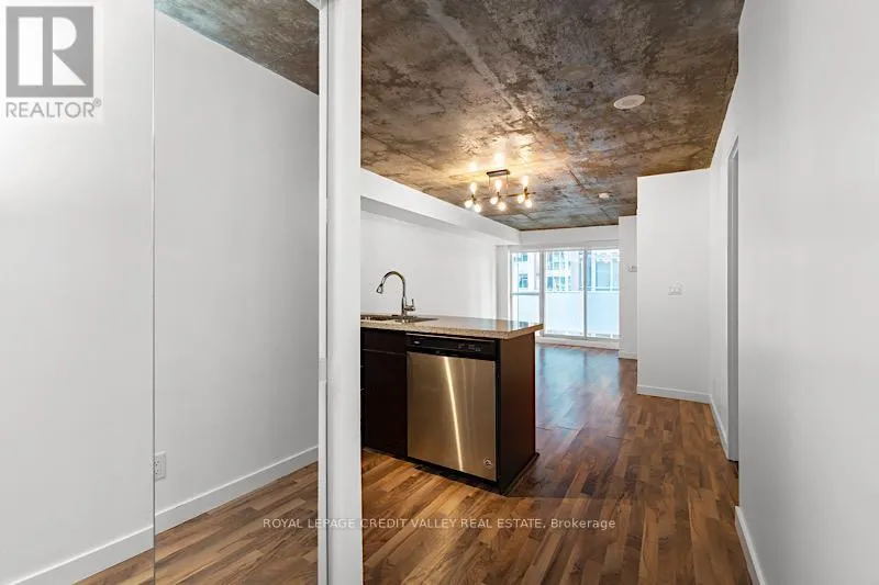Cross Streets: King St W / Shaw St. ** Directions: North on Strachan, West on King St W. Welcome to your new home in the highly sought-after DNA Condos! Priced to sell! This bright and spacious 1-bedroom, 1-bathroom unit offers a functional layout with ample space for a dining area and a dedicated home office nook ideal for today's lifestyle. Featuring laminate flooring throughout, exposed concrete ceilings for an urban-chic feel, and a south-facing balcony overlooking the peaceful and quiet courtyard perfect for morning coffees or evening relaxation.