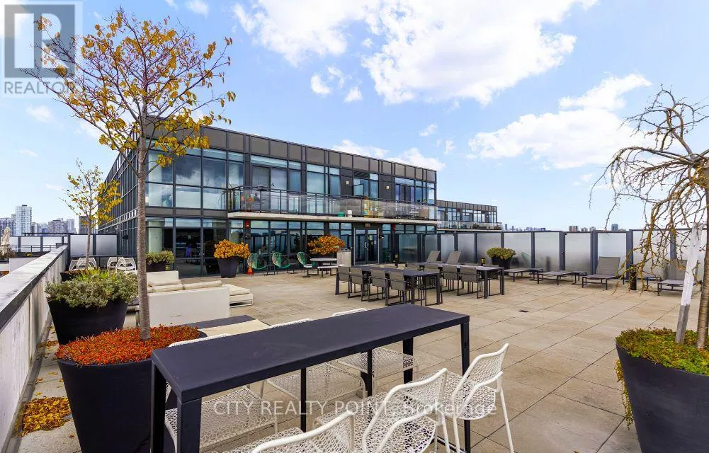 Hardwood flooring runs throughout, adding warmth and continuity to the space. A conveniently located locker on the same floor adds extra practicality. Residents enjoy access to premium building amenities, including a rooftop terrace with stunning city views, a fully equipped fitness center, a stylish rooftop party room, and 24-hour concierge service. Ideally located in the vibrant East End, this home places you steps from Crows Theatre, the newly opened Piano Piano, and the best of Leslieville's shops, cafés, parks, and transit. An exceptional opportunity to experience stylish, low-maintenance urban living-welcome home. (id:27476)