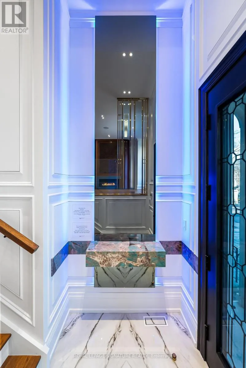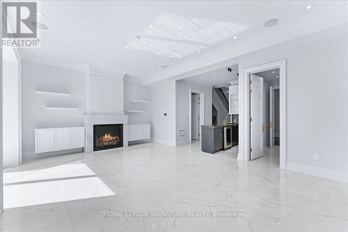 Large family room features 11 ft ceiling, Gasfireplace, fully customized built-in wall unit w/ white oak rift cut, completed w/ porcelain and solid brass hardware. ThePrimary bedroom w/ 10 ft ceiling retreat features a luxurious 5-piece heated ensuite and boutique-style his/her walk-in closet.Walk-out basement features heated floor, Wine display w/ over 200 bottles capacity, Bar w/ granite countertop, Fully customfabricated w/ mini fridge, Gas fireplace finished w/ Italian porcelain. Heated floor in the foyer and powder room. E.V charger. (id:27476)