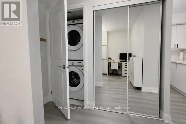 The modern kitchen features quartz countertops with waterfall, quartz backsplash, oversized island with breakfast bar, sleek white cabinetry with stainless steel appliances. Enjoy your coffee while relaxing and watching the unobstructed beautiful sunset views from the private oversized 97 sq ft balcony. The primary bedroom features a stylish feature wall, a walk-in closet and large window with clear views. A spacious den that easily functions as a home office or a second bedroom. Modern 4 pc bathroom with clean, updated finishes. Steps to Subway Station, TTC, minutes to Yorkdale Shopping Centre, Costco, York University, restaurants, shops, Highways 401 & 400 and much more! Condo building has full amenities including 24-hour concierge, gym, indoor pool, sauna, media and party room, business centre, guest suites, and visitor parking. Includes 1 parking, 1 locker, and all utilities except hydro. Excellent opportunity for first-time buyers or investors seeking value, location, and future potential (id:27476)