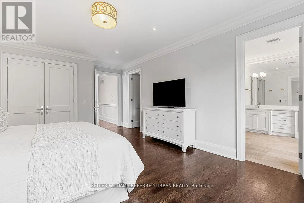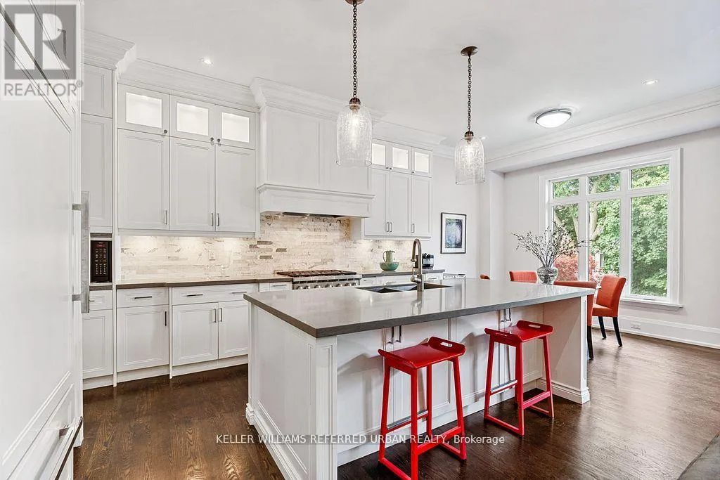 A double car garage, a true rarity in the area, provides both convenience and exceptional value.Inside, the home's refined aesthetic is immediately felt. The gourmet chef's kitchen is the centrepiece of the main floor-anchored by custom cabinetry, an oversized island, and a fully equipped butler's pantry. Premium Sub-Zero and Wolf appliances elevate every culinary experience, while the open-concept layout creates effortless flow for both everyday living and large-scale entertaining.Dramatic 10-foot ceilings on the main level and 12-foot ceilings on the lower level amplify natural light, enhancing the home's sense of scale and sophistication. Every finish has been curated to perfection: heated floors, large-format designer tiles, and rich hard wood flooring speak to the home's exceptional craftsmanship and attention to detail.The result is a residence where luxury meets livability-where thoughtful design, timeless materials, and modern comfort converge to create an extraordinary North Forest Hill home. (id:27476)