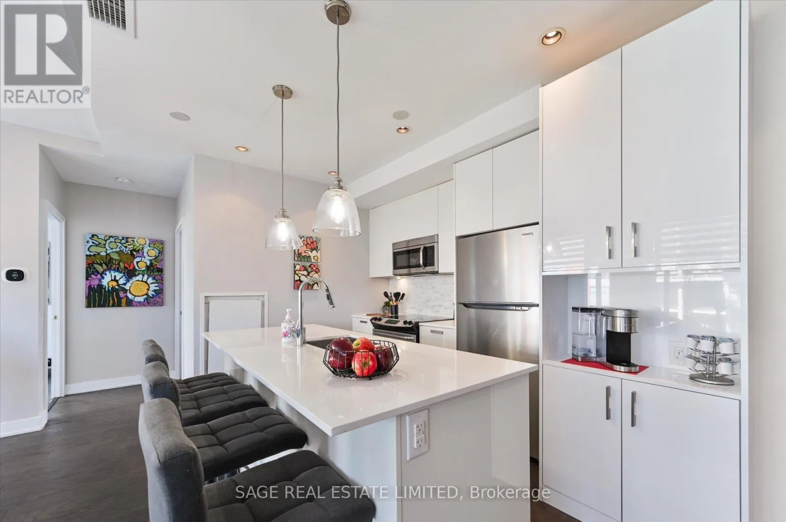 Thoughtfully designed with sleek cabinetry, quartz countertops, stainless steel appliances, and a custom pantry/coffee bar, it's equal parts functional and stylish. The generous breakfast bar comfortably seats four-perfect for casual dining, morning espresso rituals, or hosting friends.The primary bedroom is a calm retreat, complete with a double closet, spa-inspired ensuite, and tranquil courtyard views through expansive windows. The second bedroom offers incredible flexibility-ideal as a guest suite, home office, or creative space-with direct access to the private 47 sq. ft. balcony for a breath of fresh air anytime. A full double closet adds practical storage.Residents of MYC enjoy an exceptional suite of amenities, including a fully equipped fitness centre, rooftop terrace with sweeping city views, a chic party room, guest suites, and 24-hour concierge service.With a Walk Score of 93, everything you need is within easy reach. The Davisville subway station, local cafés, restaurants, shops, and the Beltline Trail are just steps away-making day-to-day living feel seamless (and yes, your car may feel a little neglected).Recent updates include zebra blinds (2022), refrigerator (2023), custom pantry/coffee bar (2024), an updated second bathroom with new vanity and rain shower head (2024), Ecobee WiFi thermostat, new dining room chandelier and foyer lighting (2025), and fresh paint accents (2025).Complete with parking and a locker, this is a turnkey opportunity in one of midtown Toronto's most vibrant and connected communities. (id:27476)